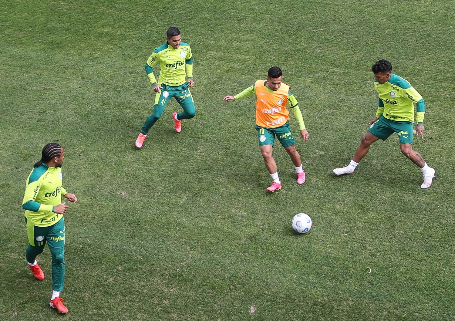 Abel Ferreira comandou um treino técnico de cerca de 1h com pausas para orientações. O grupo foi dividido em quatro nas duas metades do campo para um trabalho de posse de bola, balanço de marcação e infiltrações com finalizações. Ao final, alguns atletas praticaram cobranças de falta e outros fizeram trabalhos específicos com os assistentes técnicos.