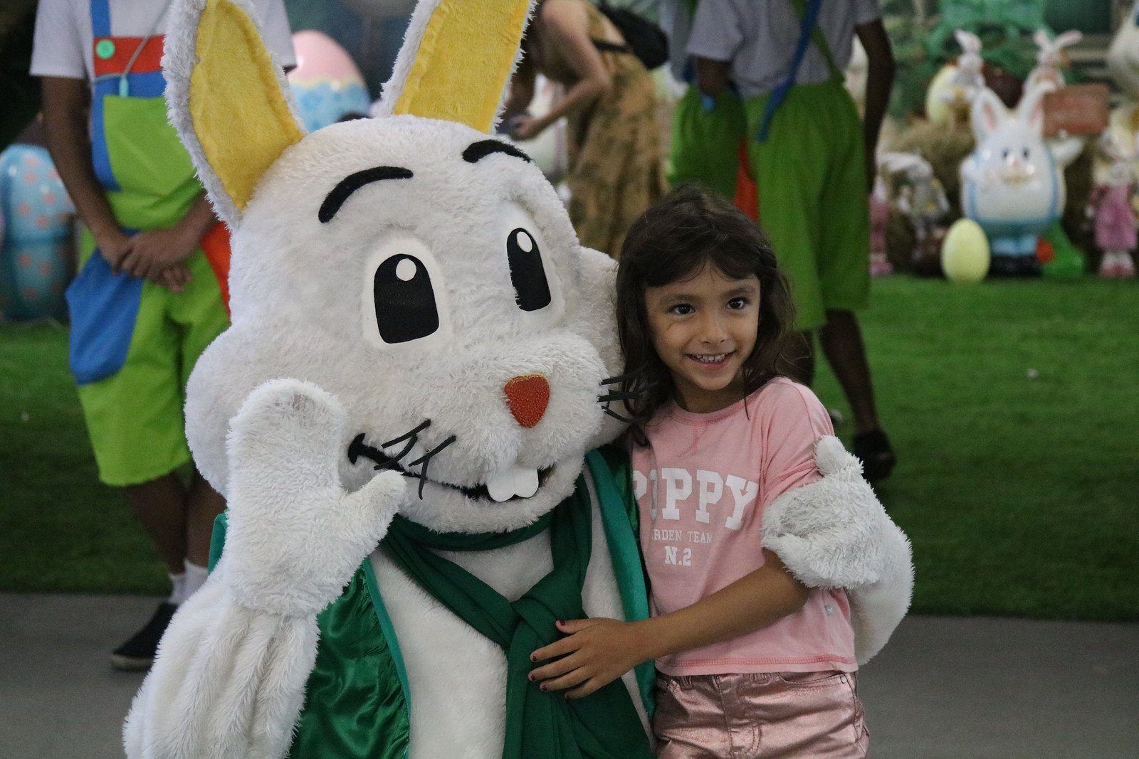 Quem também marcou presença no evento foi o coelhinho, o personagem símbolo da Páscoa, que encantou a criançada, proporcionando muitas fotos na decoração do evento.