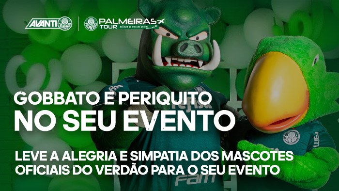 Anime a sua festa ou evento com os mascotes oficiais do Palmeiras; saiba mais