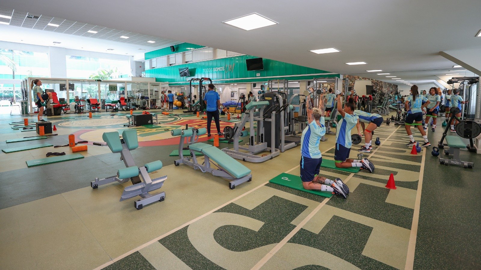 Antes de ir a campo, Palestrinas fazem academia na parte interna do Centro de Excelência