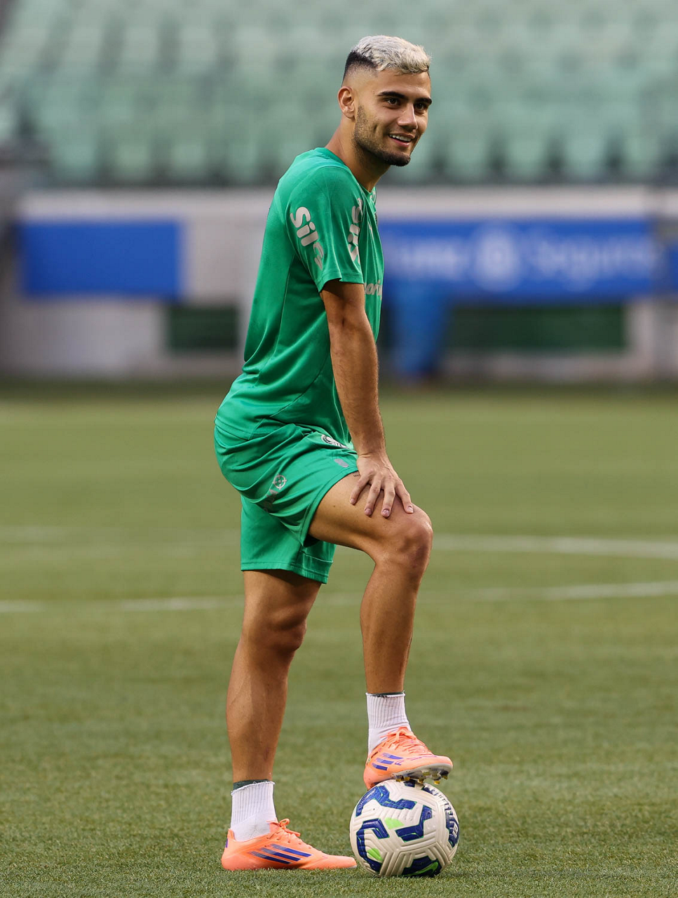 O jogador Rikelme, da SE Palmeiras, durante treinamento, na arena Allianz Parque. (Foto: Cesar Greco/Palmeiras/by Canon)