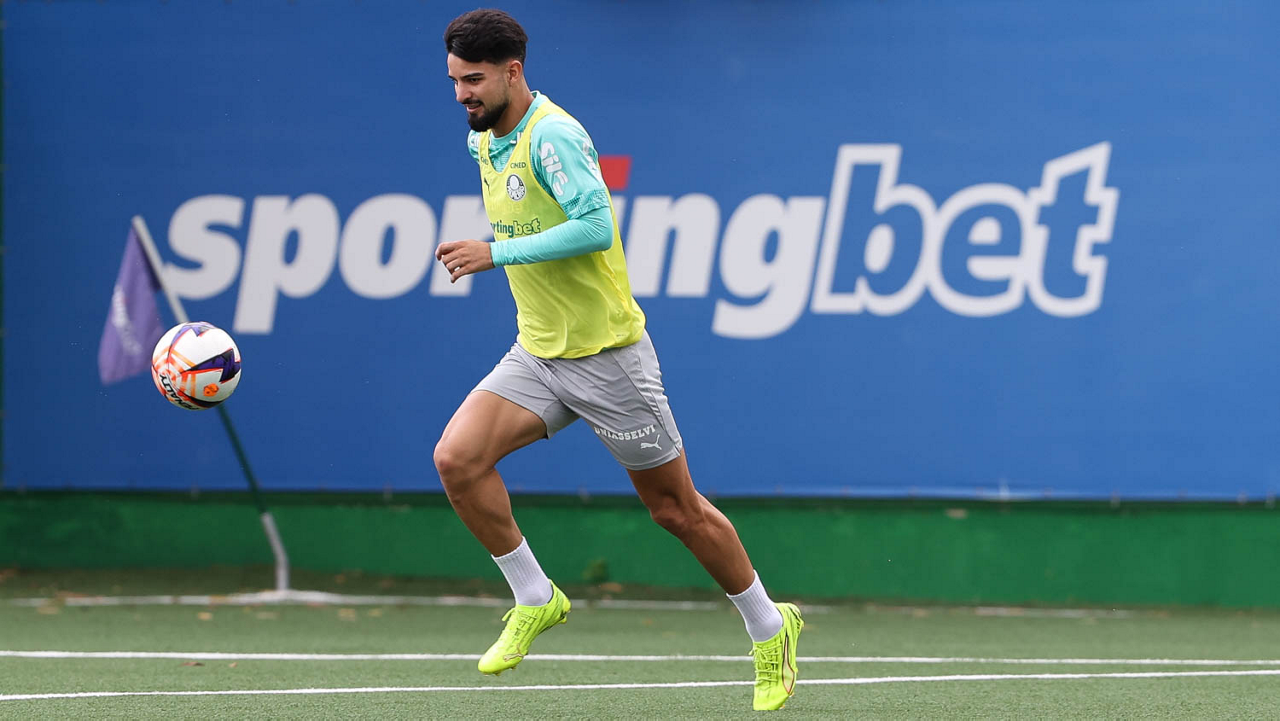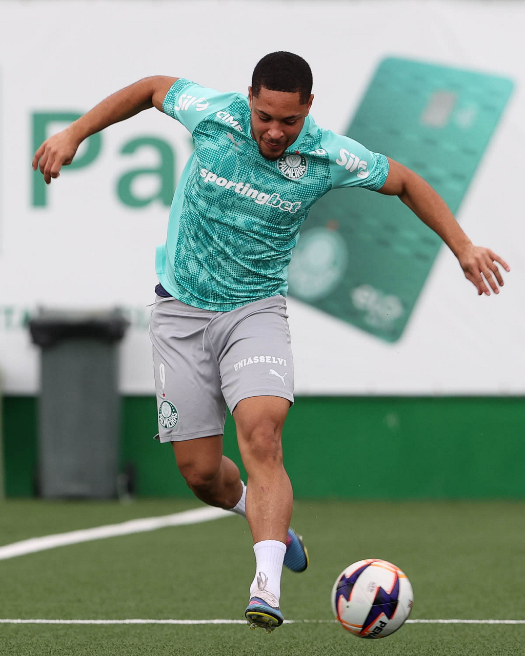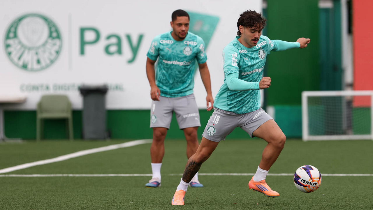 O jogador Vitor Roque, da SE Palmeiras, durante treinamento, na Academia de Futebol. (Foto: Cesar Greco/Palmeiras/by Canon)