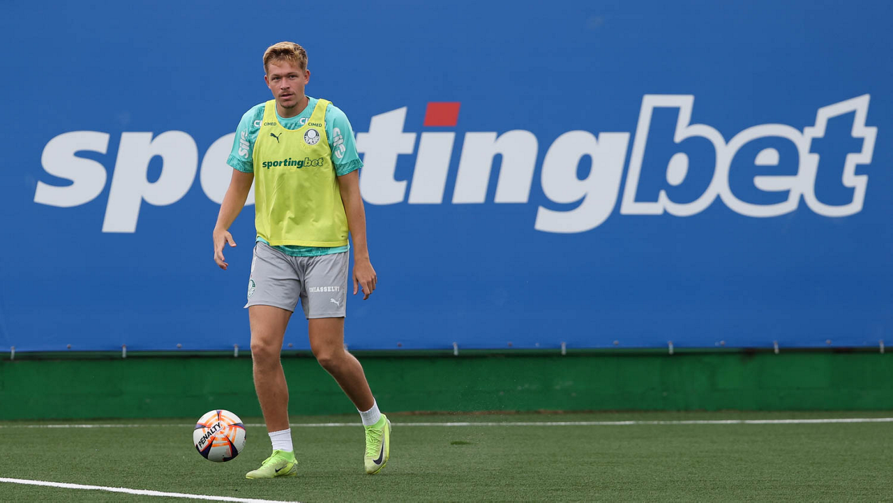 O jogador Bruno Fuchs, da SE Palmeiras, durante treinamento, na Academia de Futebol. (Foto: Cesar Greco/Palmeiras/by Canon)