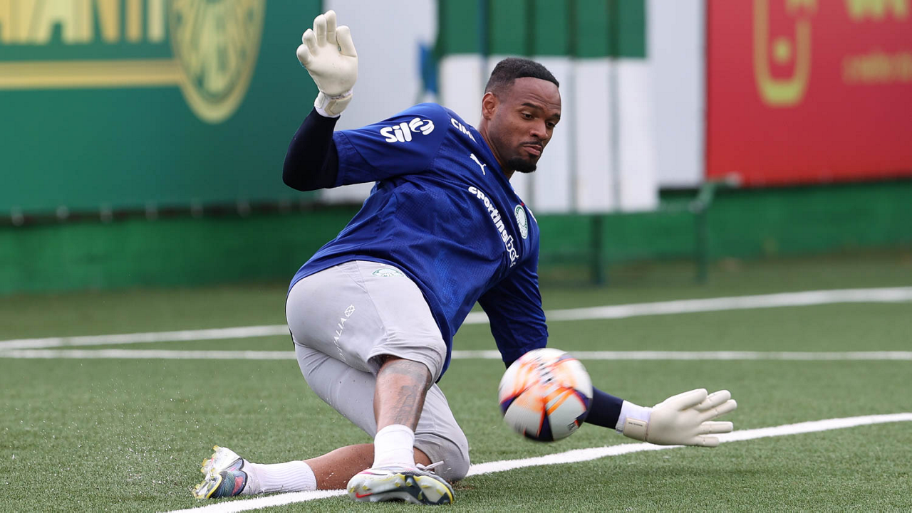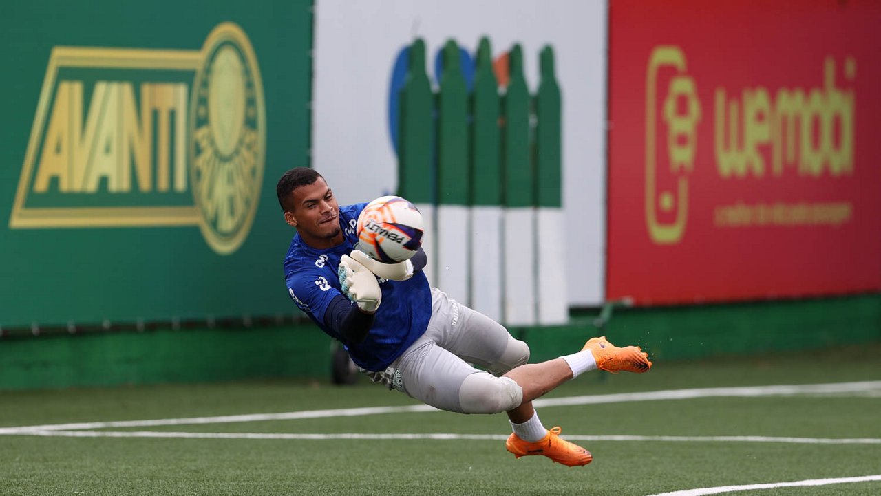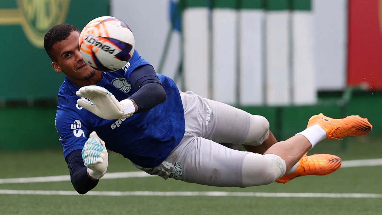 O goleiro Audo, da SE Palmeiras, durante treinamento, na Academia de Futebol. (Foto: Cesar Greco/Palmeiras/by Canon)