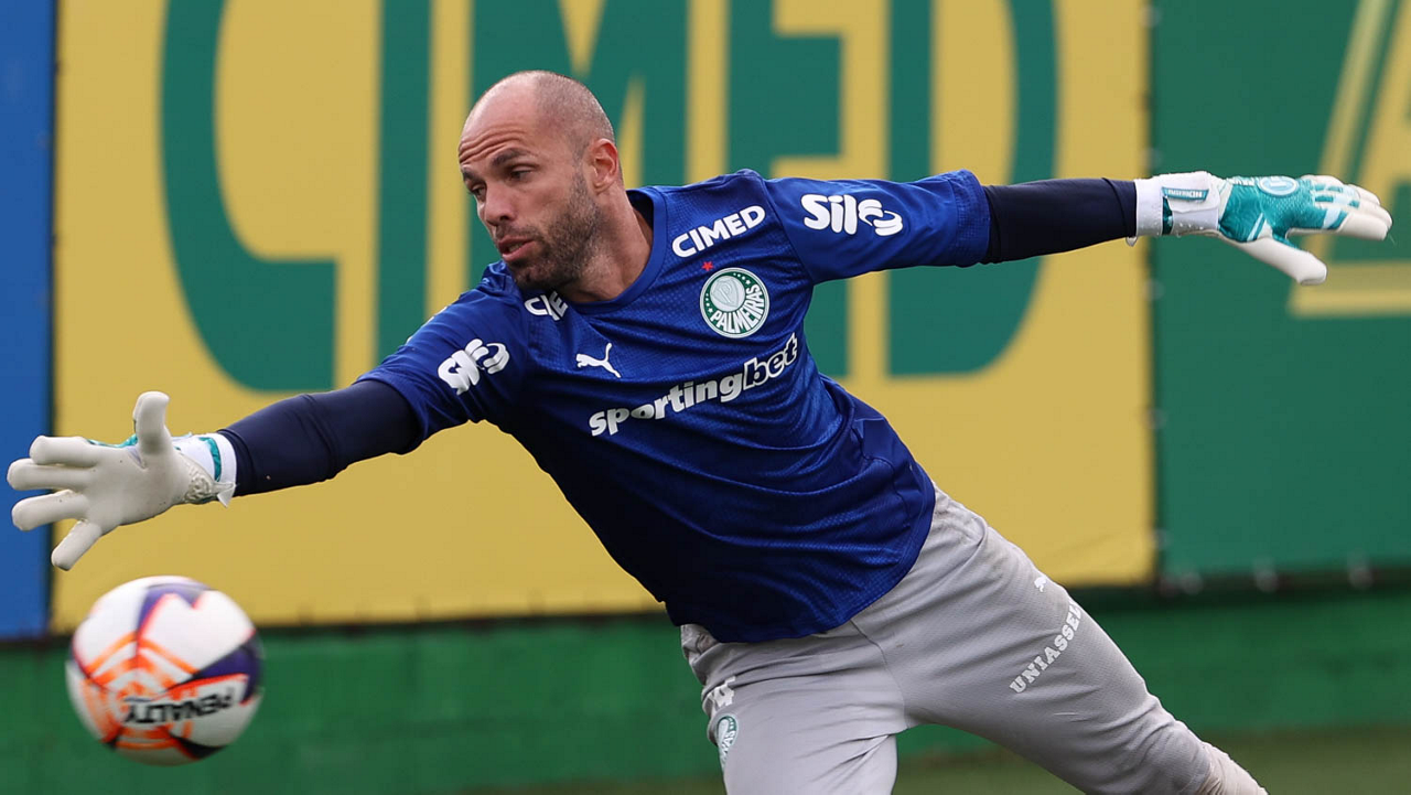 O goleiro Carlos Miguel, da SE Palmeiras, durante treinamento, na Academia de Futebol. (Foto: Cesar Greco/Palmeiras/by Canon)