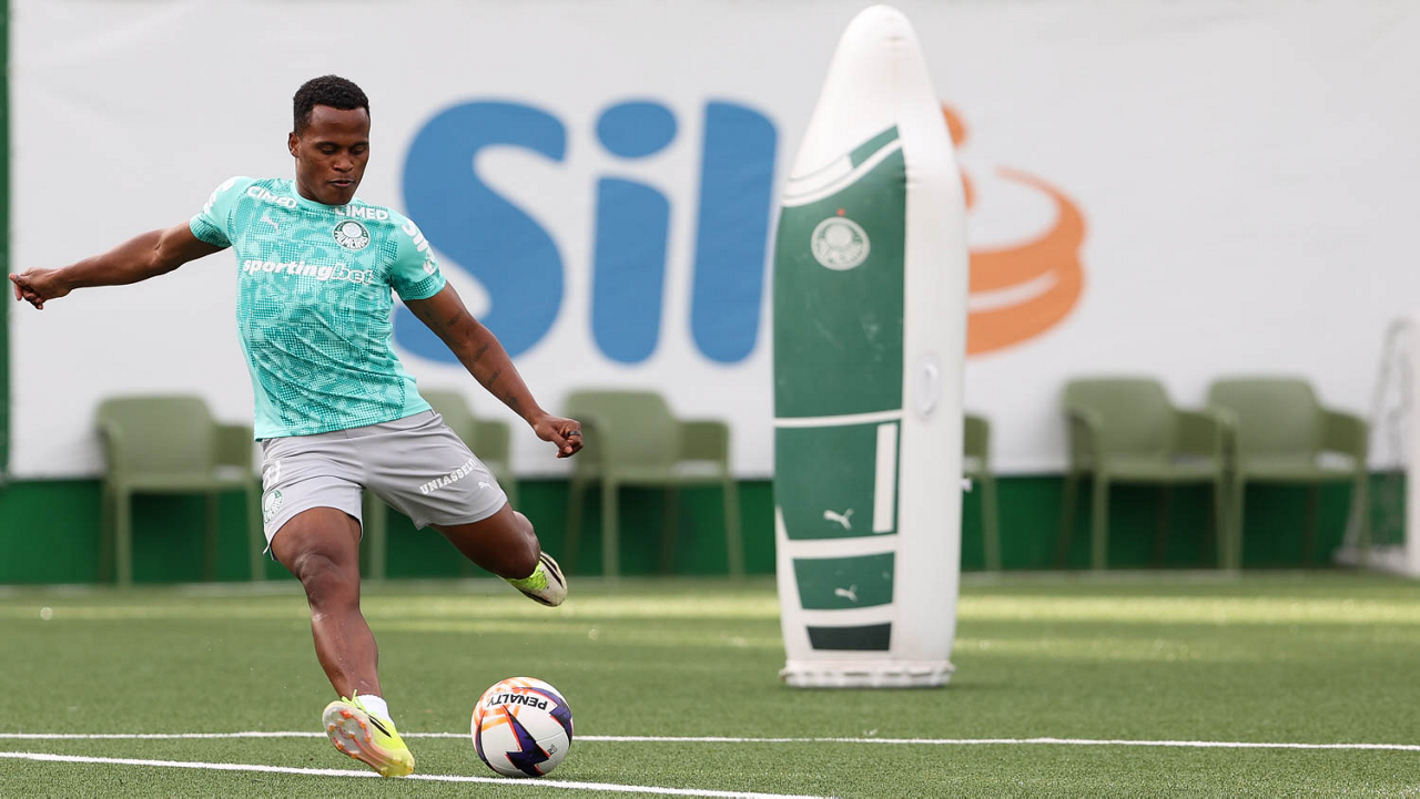O jogador Jhon Arias, da SE Palmeiras, durante treinamento, na Academia de Futebol. (Foto: Cesar Greco/Palmeiras/by Canon)