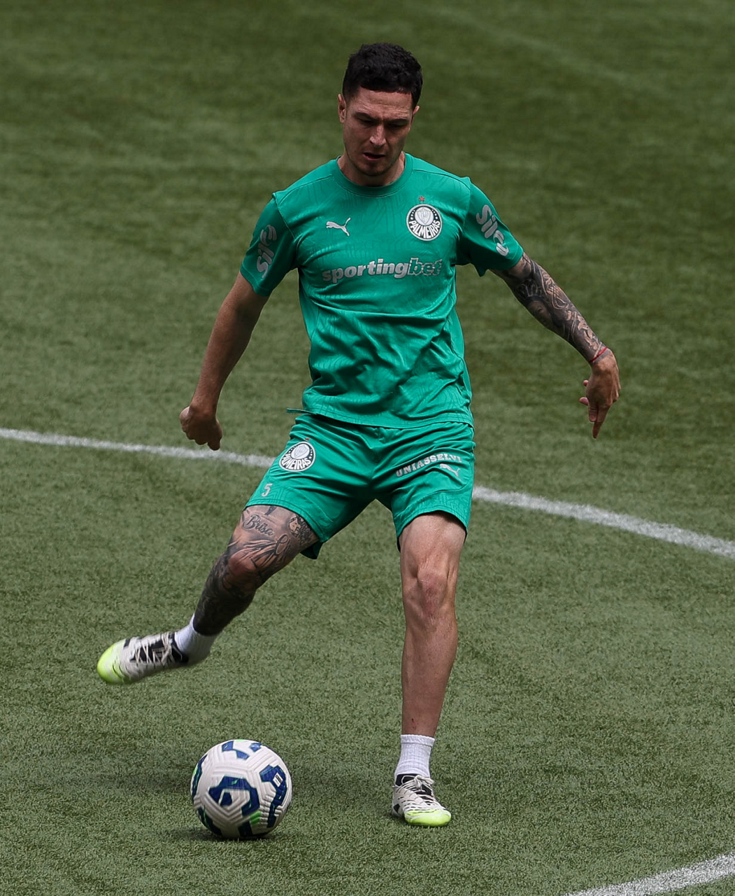 O jogador Joaquín Piquerez, da SE Palmeiras, durante treinamento, na arena Allianz Parque. (Foto: Cesar Greco/Palmeiras/by Canon)