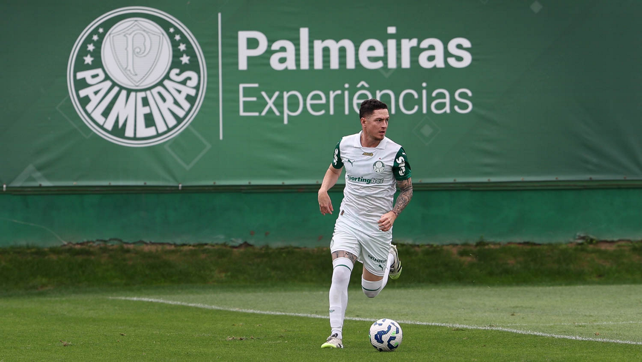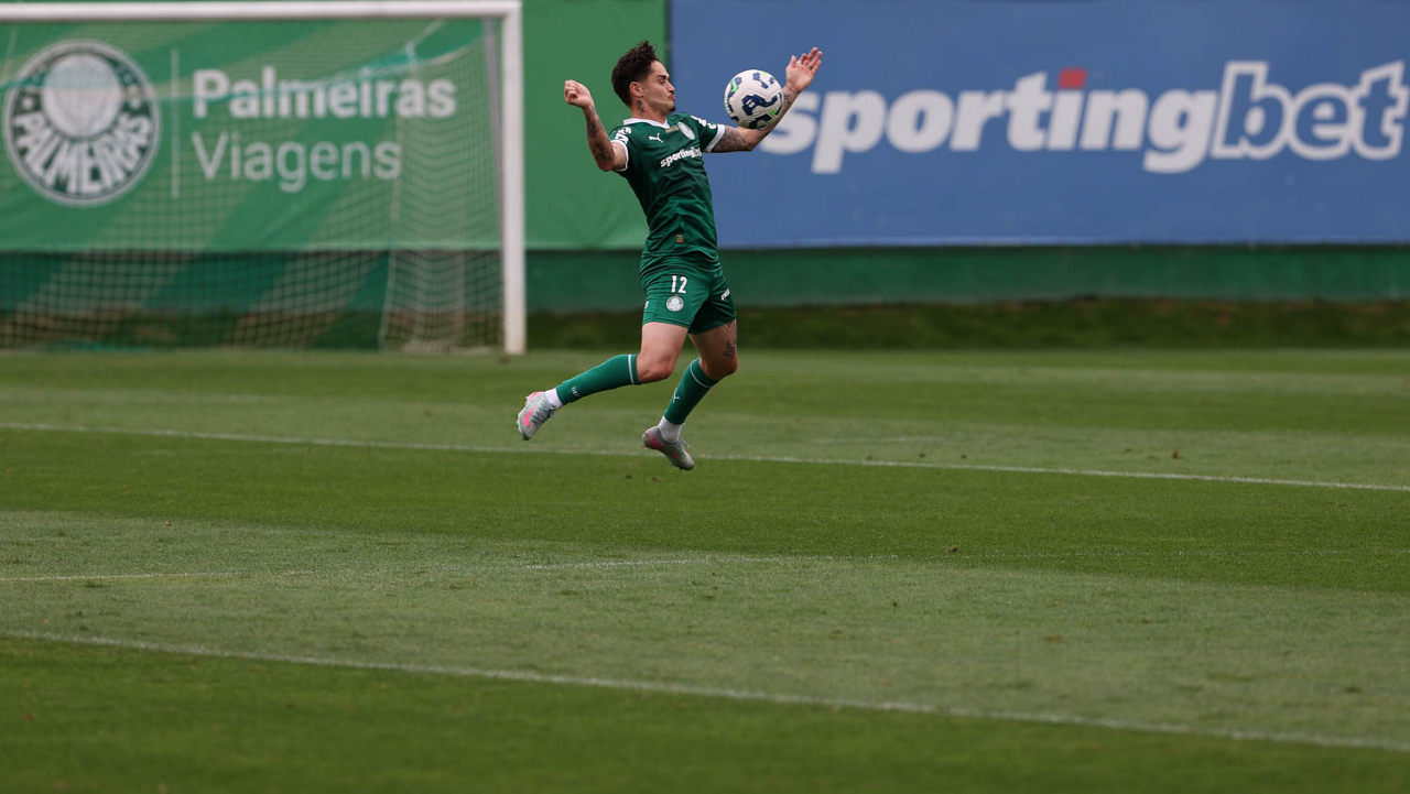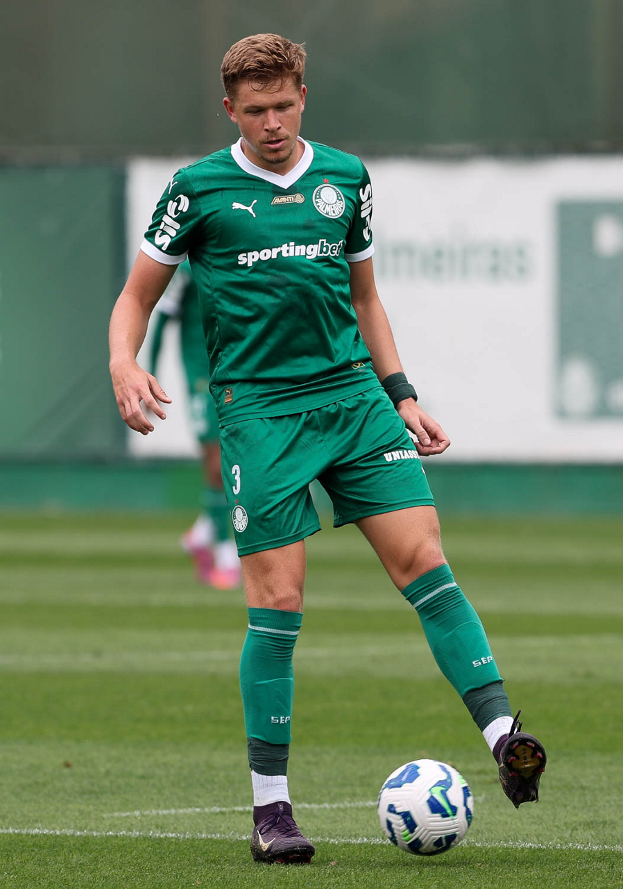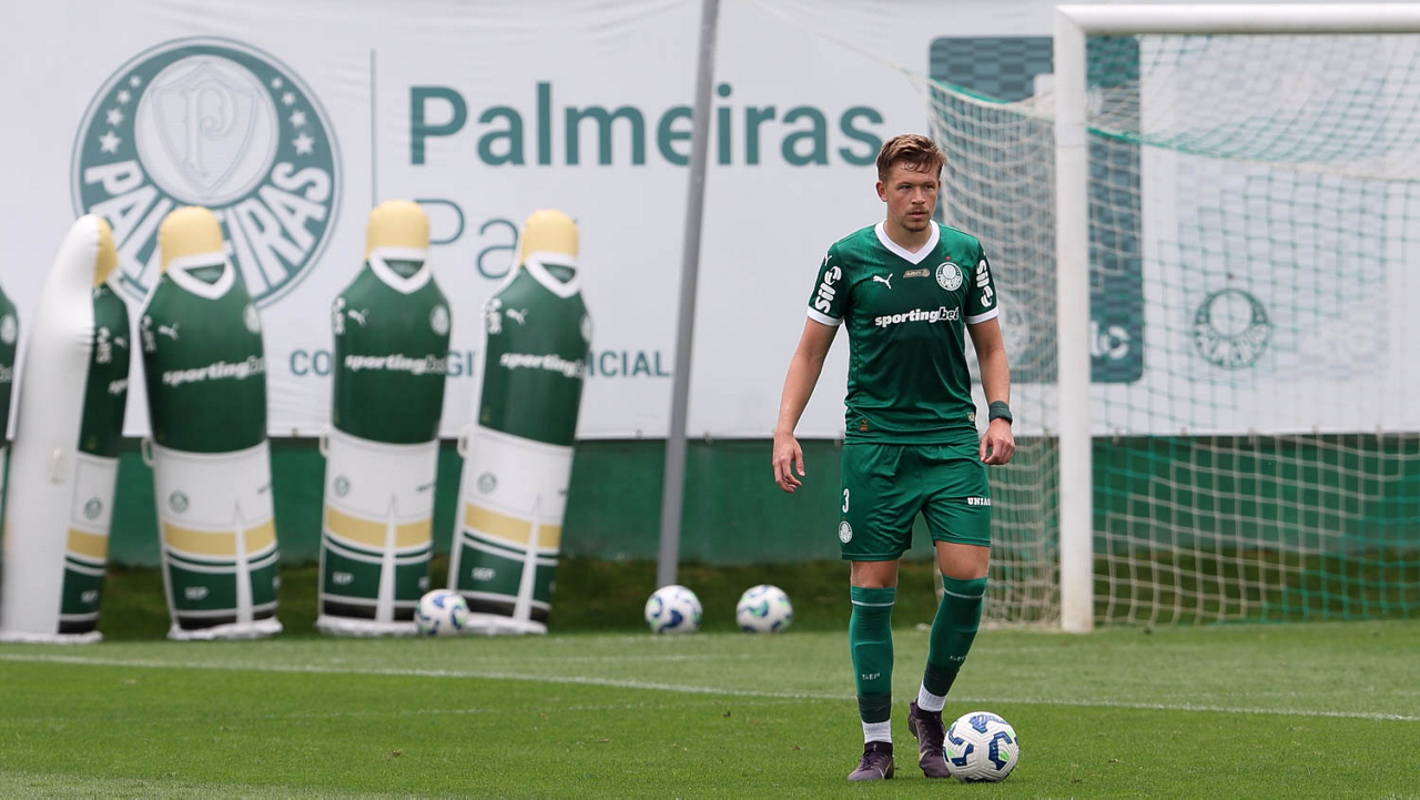 O jogador Bruno Fuchs, da SE Palmeiras, durante treinamento, na Academia de Futebol. (Foto: Cesar Greco/Palmeiras/by Canon)