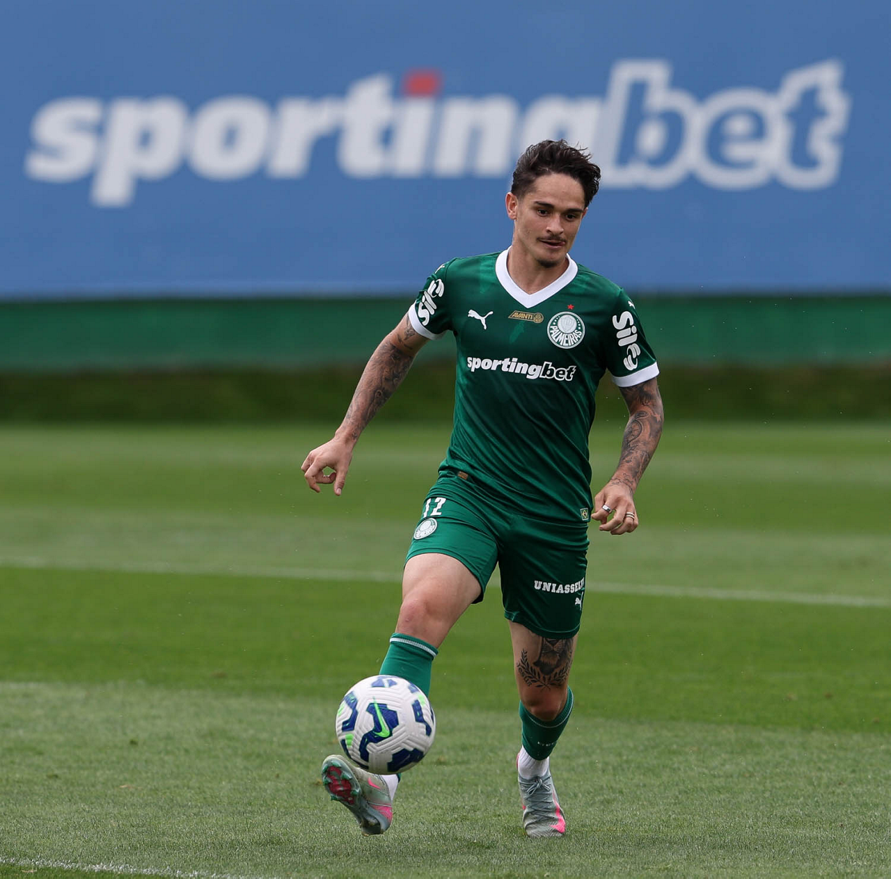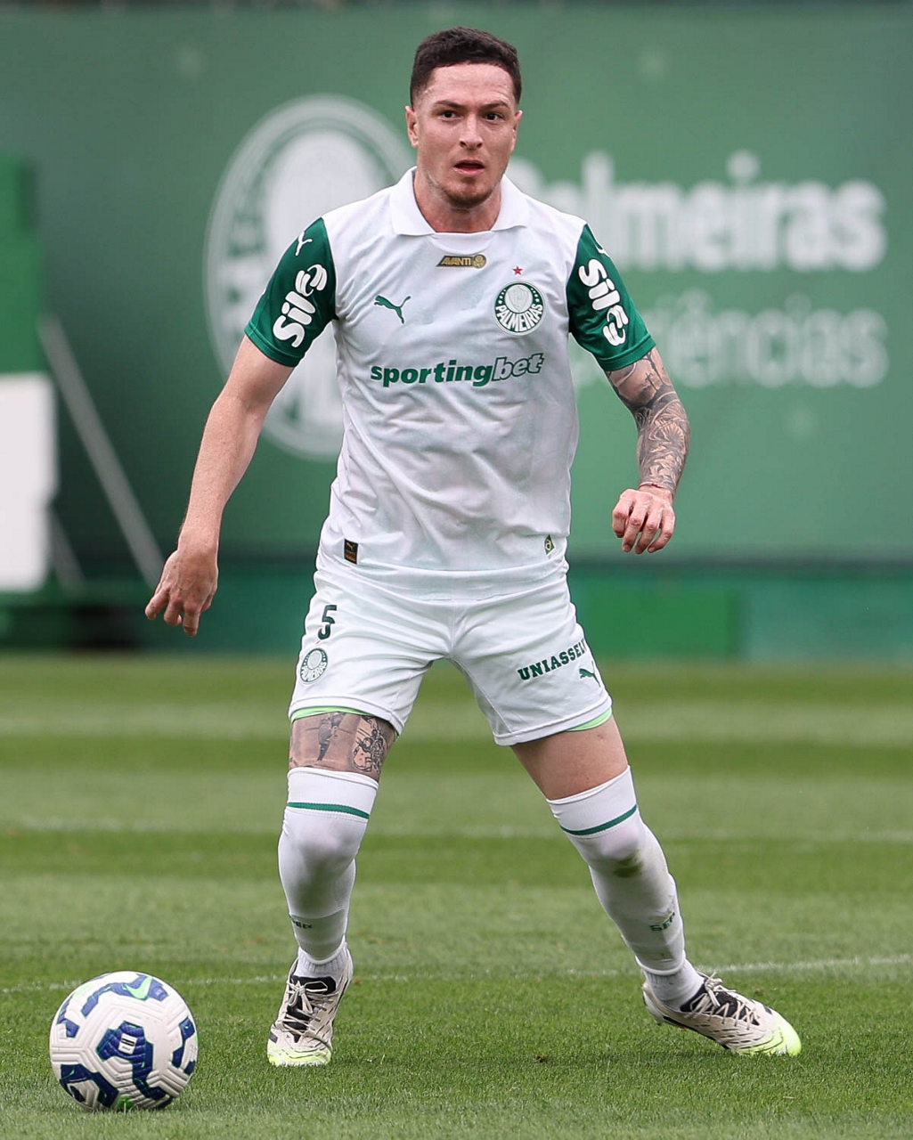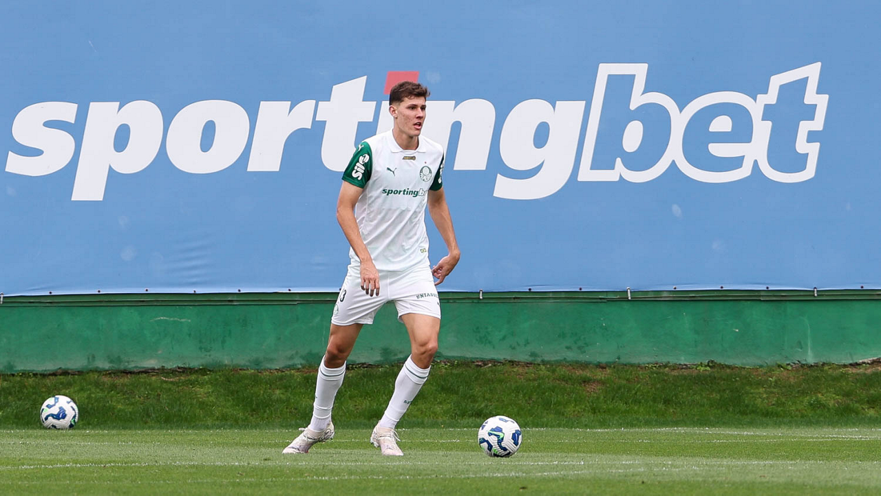 O jogador Bruno Fuchs, da SE Palmeiras, durante treinamento, na Academia de Futebol. (Foto: Cesar Greco/Palmeiras/by Canon)
