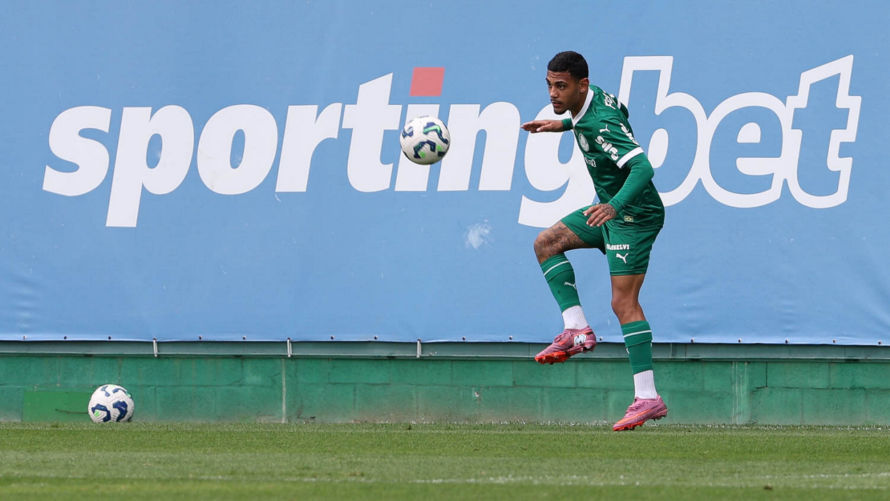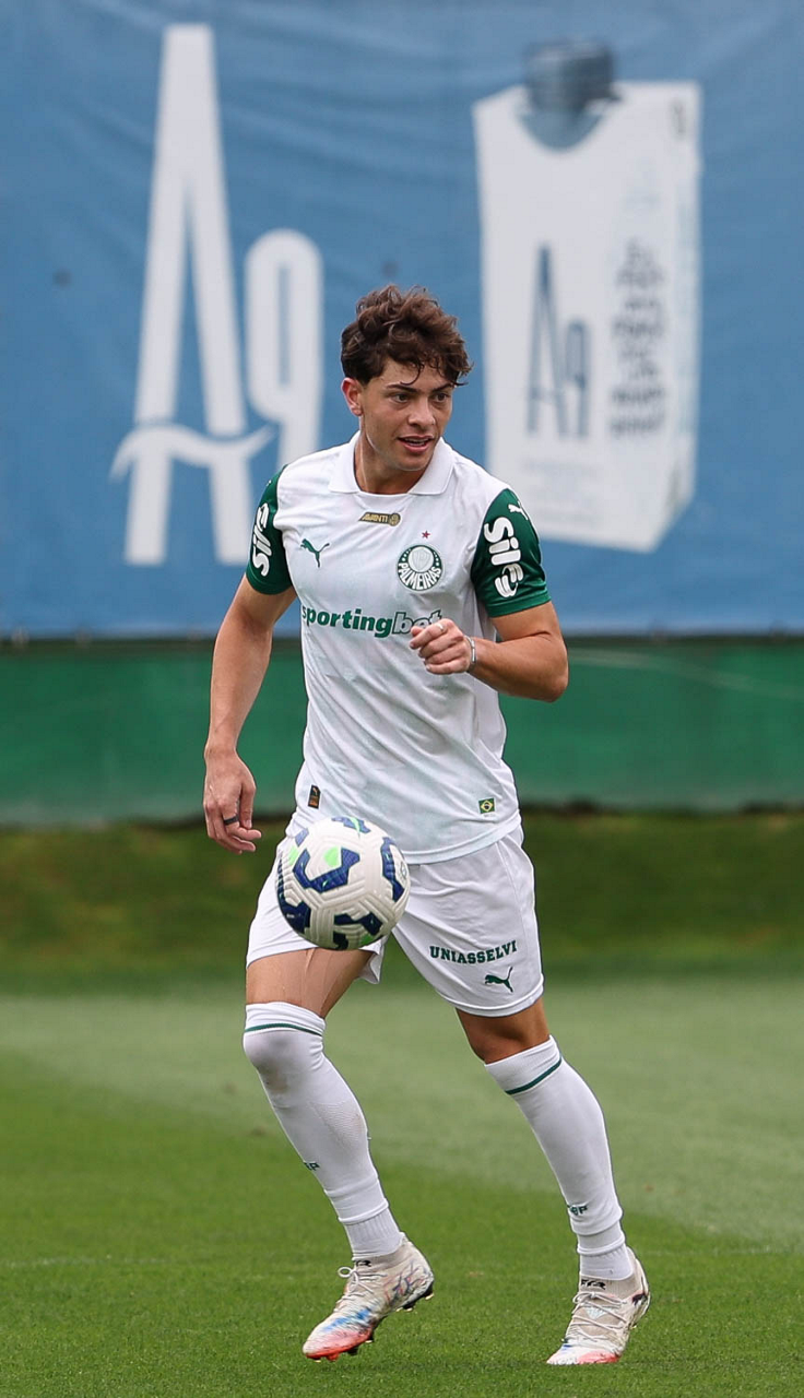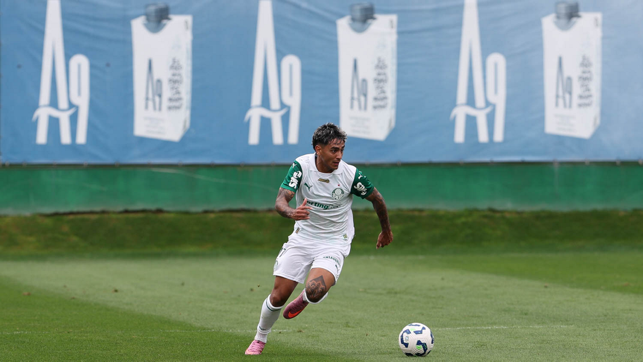 O jogador Vitor Roque, da SE Palmeiras, durante treinamento, na Academia de Futebol. (Foto: Cesar Greco/Palmeiras/by Canon)