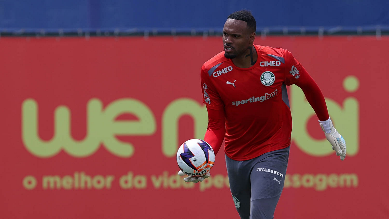 O jogador Emiliano Martínez, da SE Palmeiras, durante treinamento, na Academia de Futebol. (Foto: Cesar Greco/Palmeiras/by Canon)
