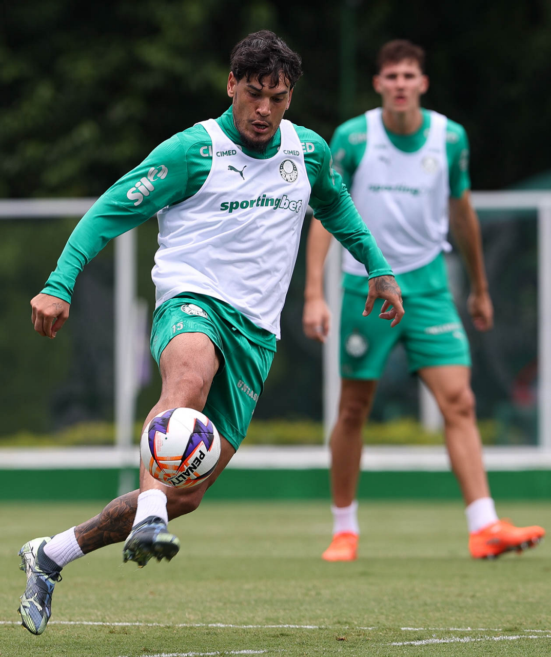O jogador Gustavo Gómez, da SE Palmeiras, durante treinamento, na Academia de Futebol. (Foto: Cesar Greco/Palmeiras/by Canon)