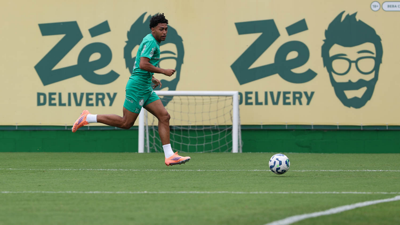 O jogador Rikelme, da SE Palmeiras, durante treinamento, na Academia de Futebol. (Foto: Cesar Greco/Palmeiras/by Canon)