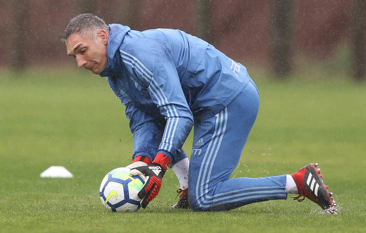 O goleiro Fernando Prass, da SE Palmeiras, durante treinamento, no CT da Chapecoense.