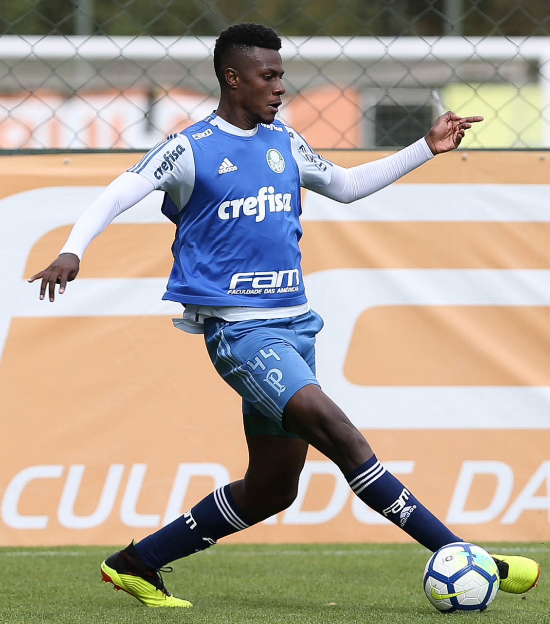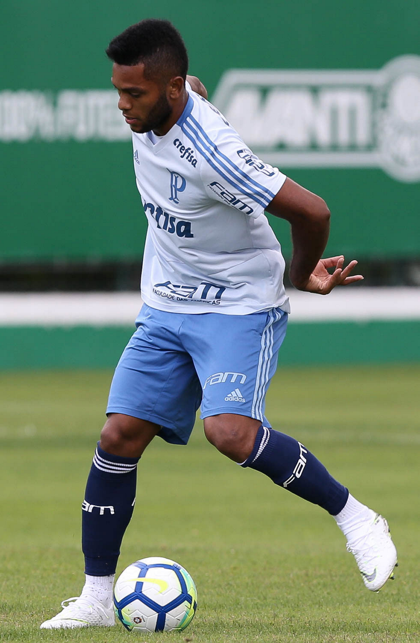 O jogador Mayke, da SE Palmeiras, durante treinamento, na Academia de Futebol.