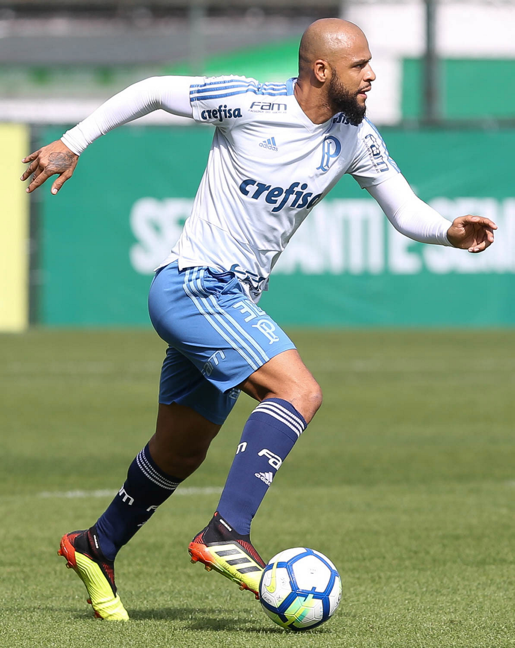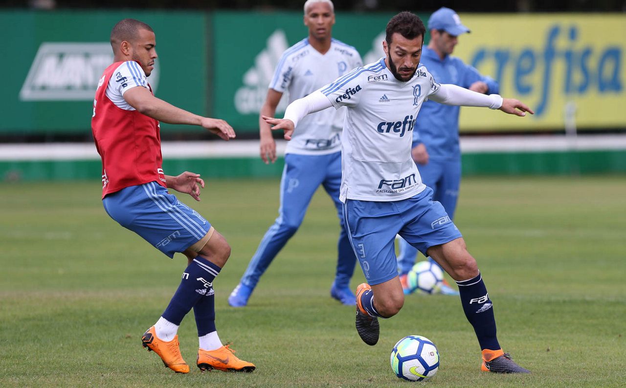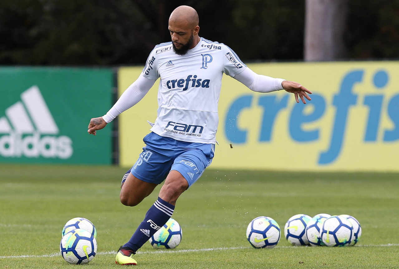 O jogador Felipe Melo, da SE Palmeiras, durante treinamento, na Academia de Futebol.