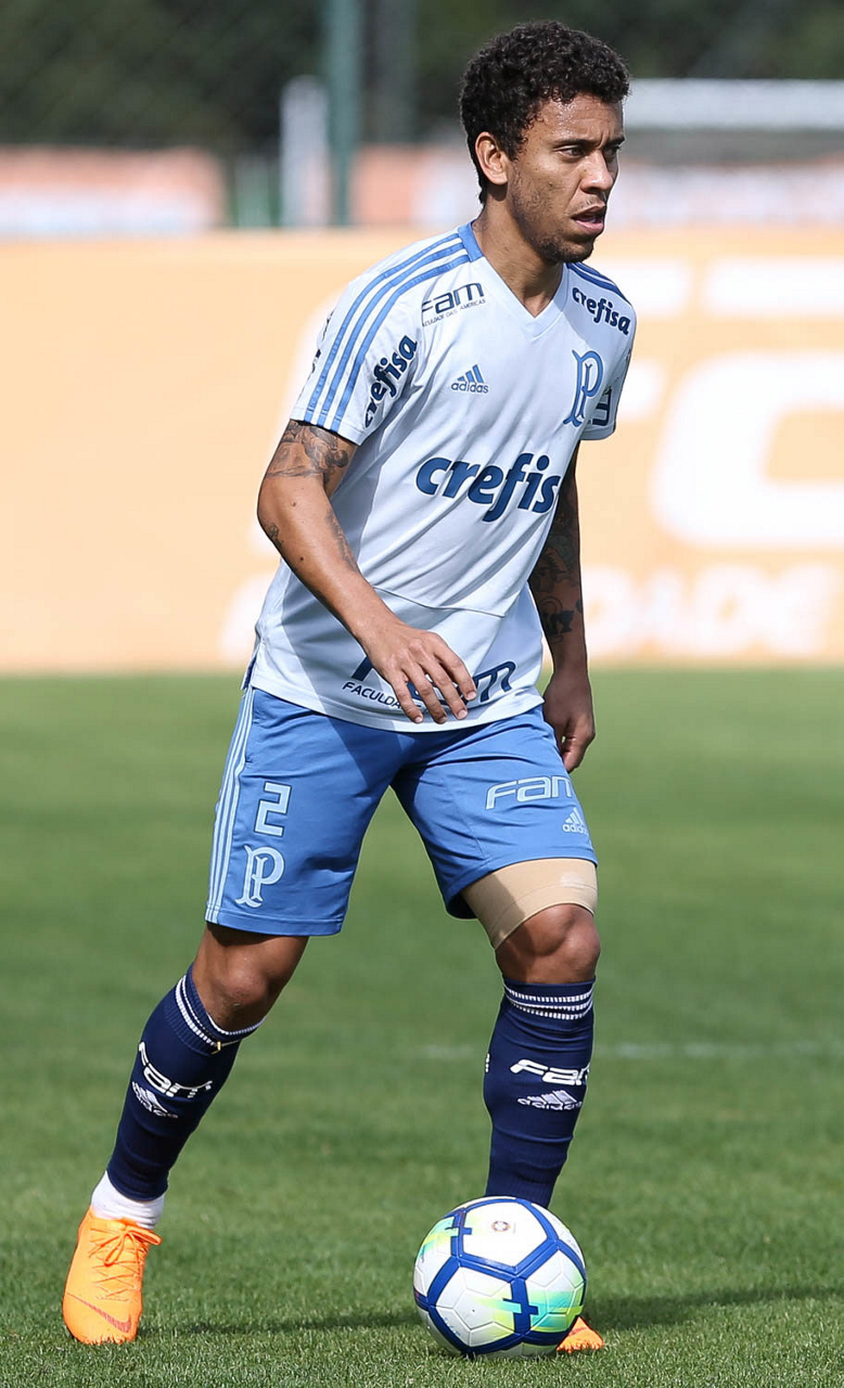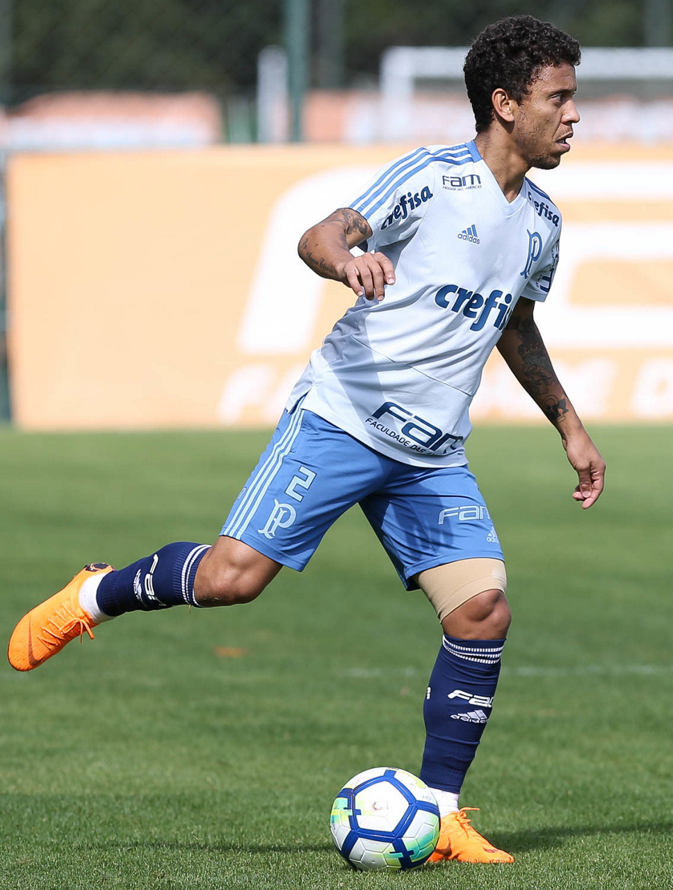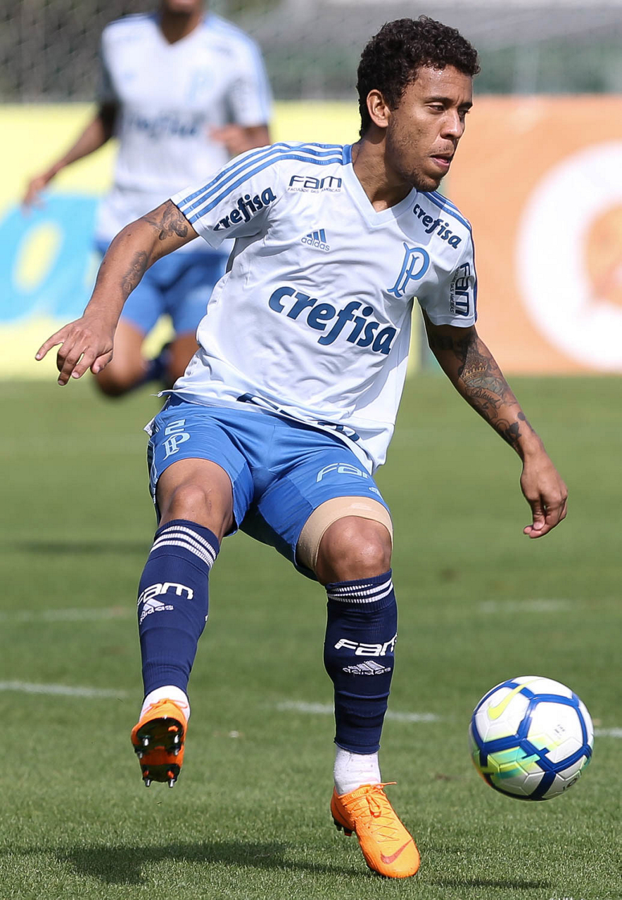 O jogador Marcos Rocha, da SE Palmeiras, durante treinamento, na Academia de Futebol.