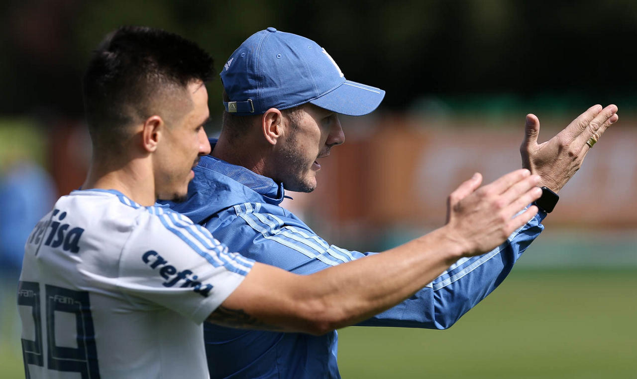 O auxiliar técnico Paulo Turra, da SE Palmeiras, durante treinamento, na Academia de Futebol.