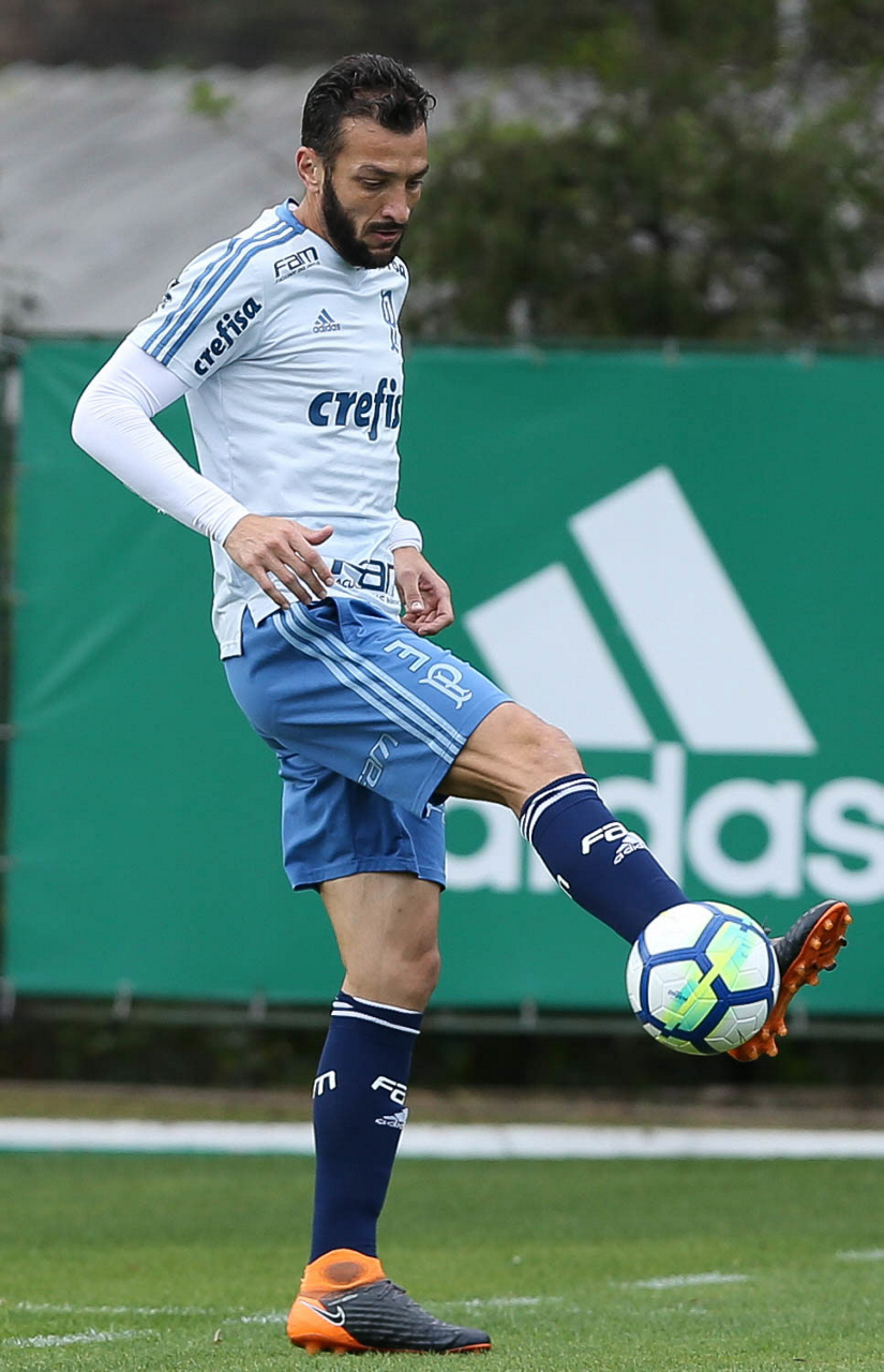 O jogador Borja, da SE Palmeiras, durante treinamento, na Academia de Futebol.