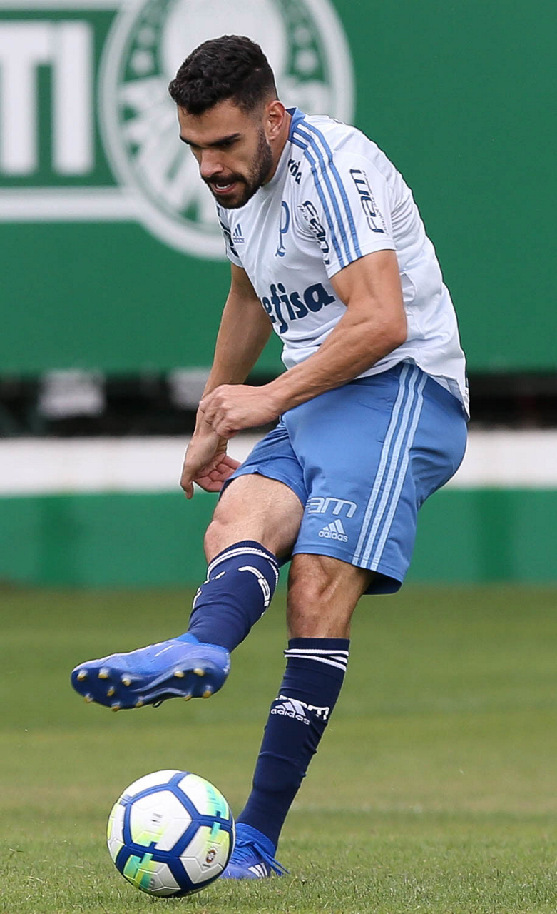 O jogador Thiago Santos, da SE Palmeiras, durante treinamento, na Academia de Futebol.