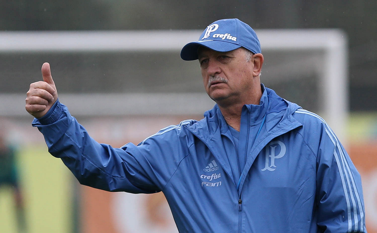 O técnico Felipão, da SE Palmeiras, durante treinamento, na Academia de Futebol.