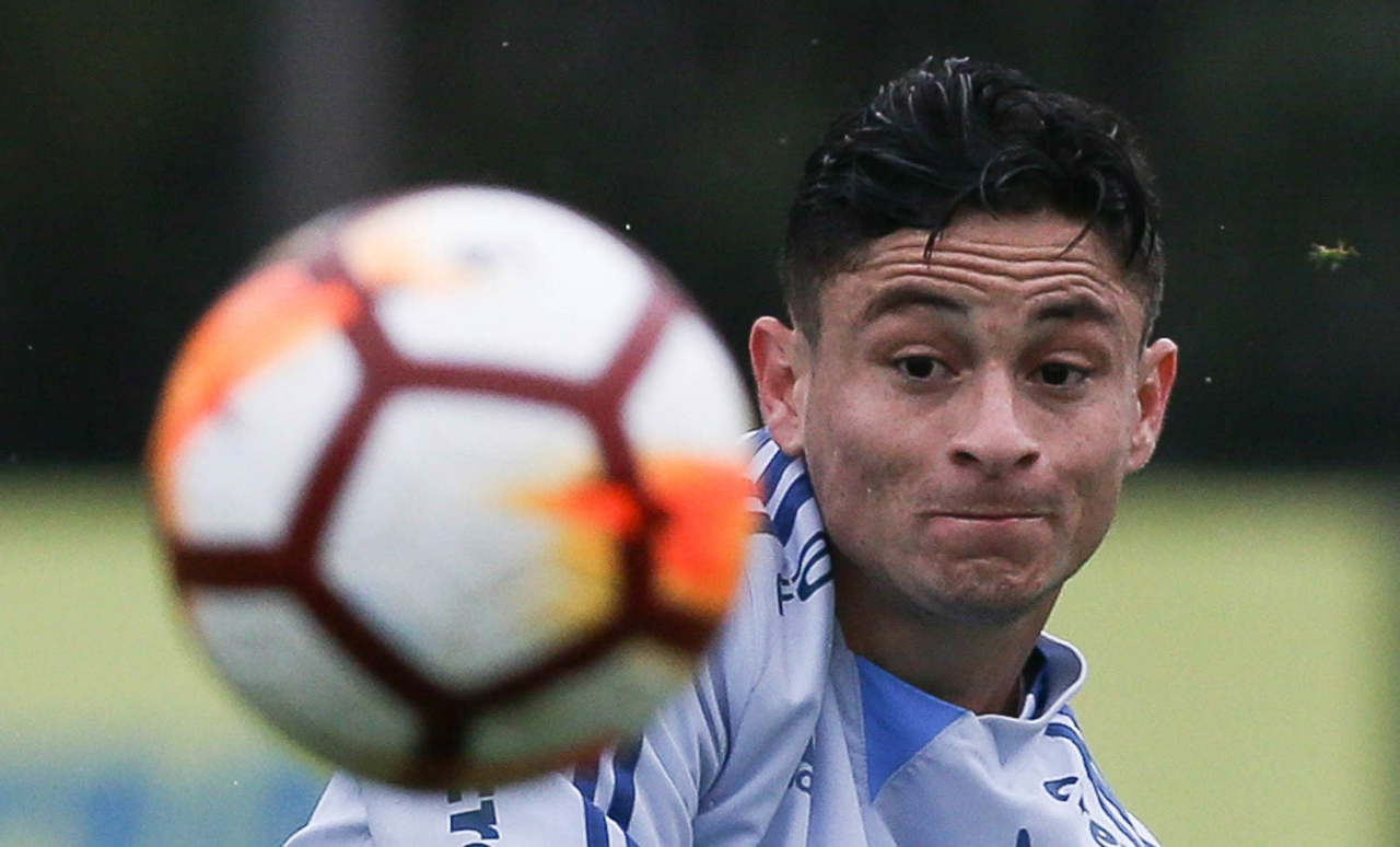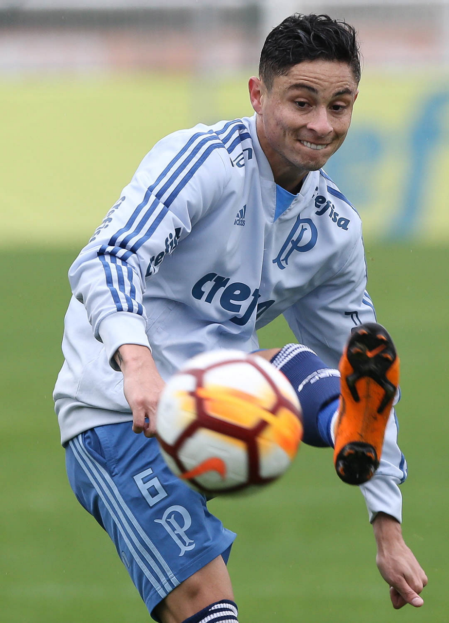 O jogador Diogo Barbosa, da SE Palmeiras, durante treinamento, na Academia de Futebol.