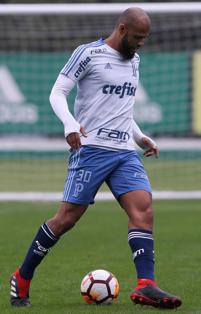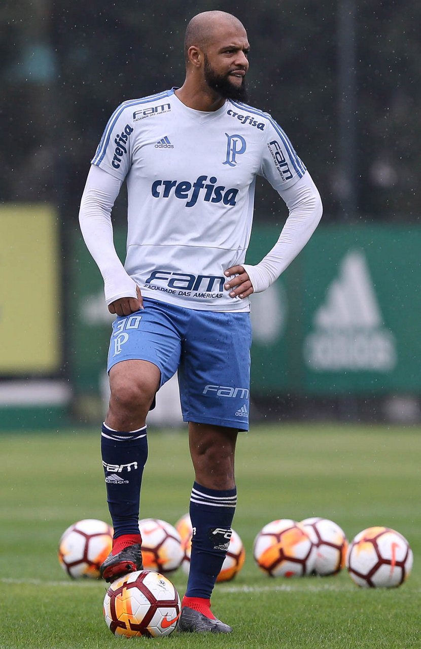 O jogador Felipe Melo, da SE Palmeiras, durante treinamento, na Academia de Futebol.