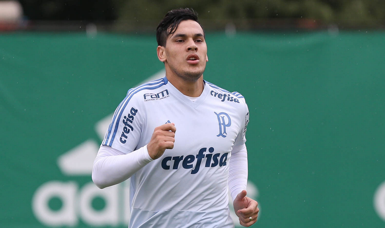 O jogador Gustavo Gómez, da SE Palmeiras, durante treinamento, na Academia de Futebol.