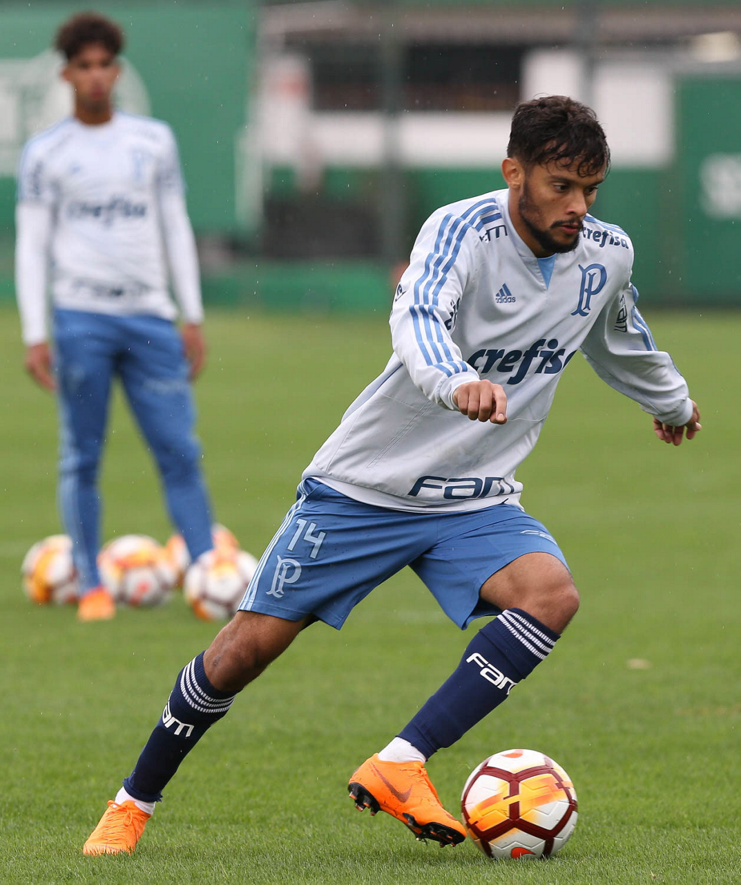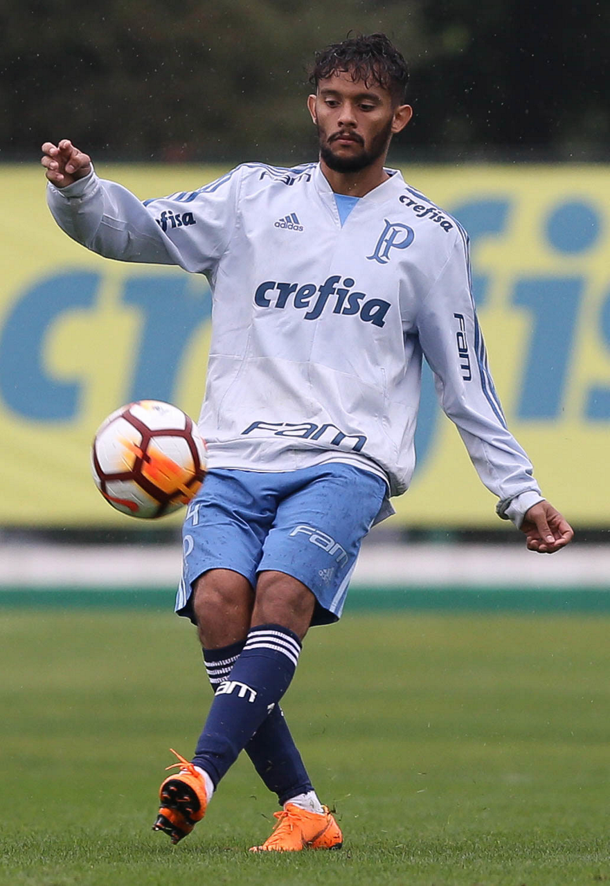 O jogador Bruno Henrique, da SE Palmeiras, durante treinamento, na Academia de Futebol.