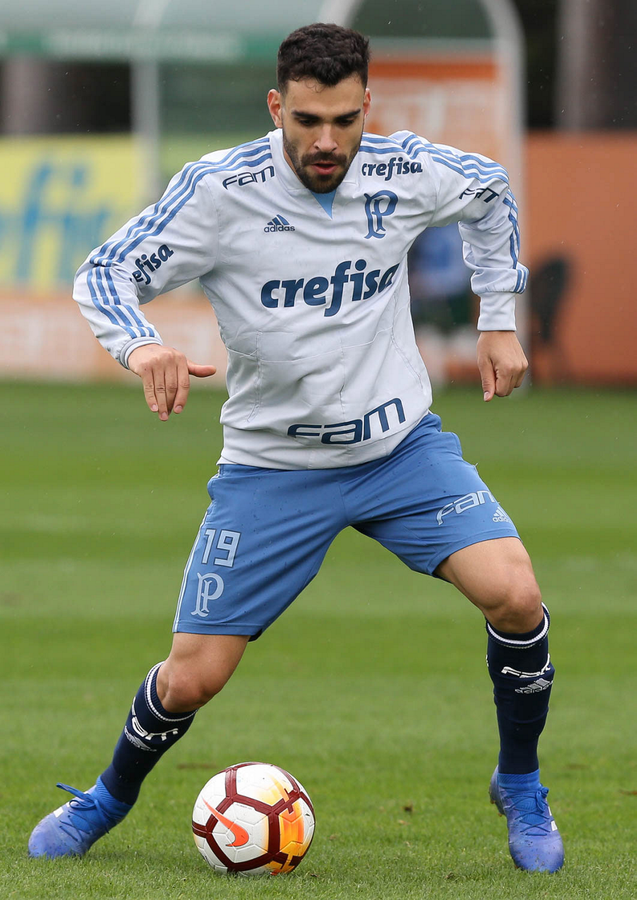 O jogador Gustavo Scarpa, da SE Palmeiras, durante treinamento, na Academia de Futebol.