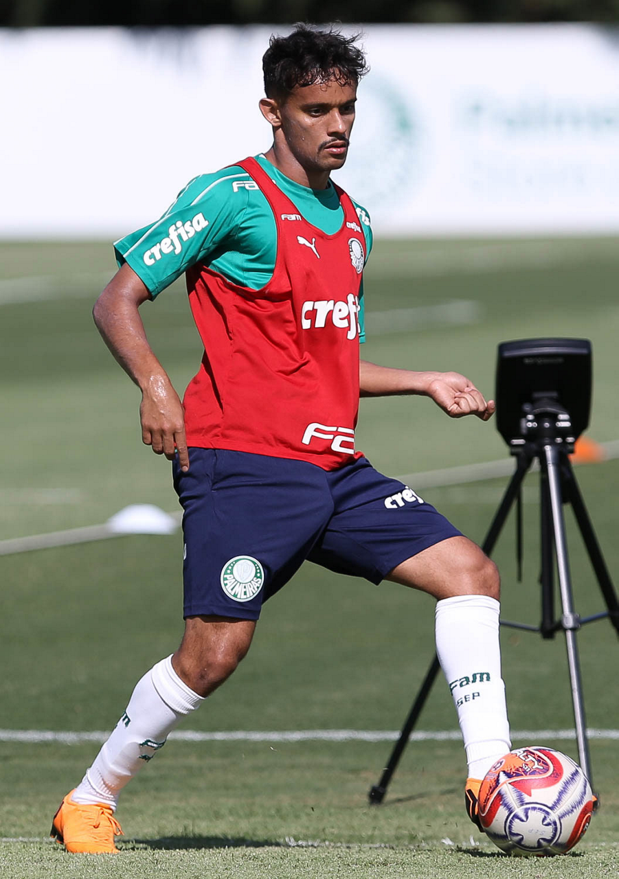 O jogador Victor Luis, SE Palmeiras, durante treinamento, na Academia de Futebol.