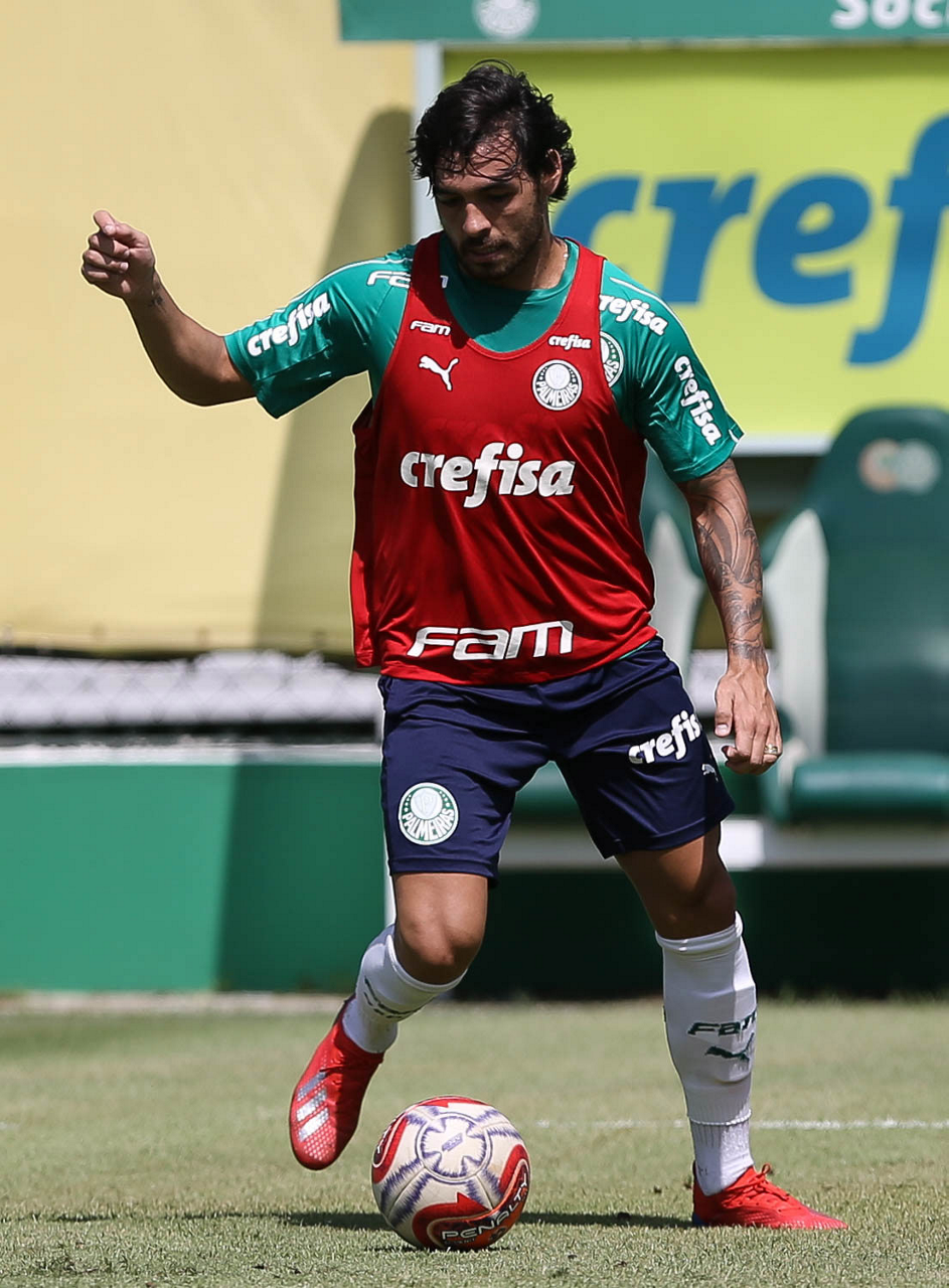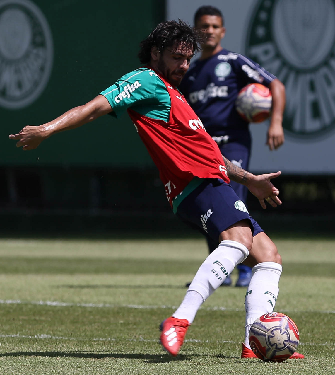 O jogador Gustavo Scarpa, da SE Palmeiras, durante treinamento, na Academia de Futebol.