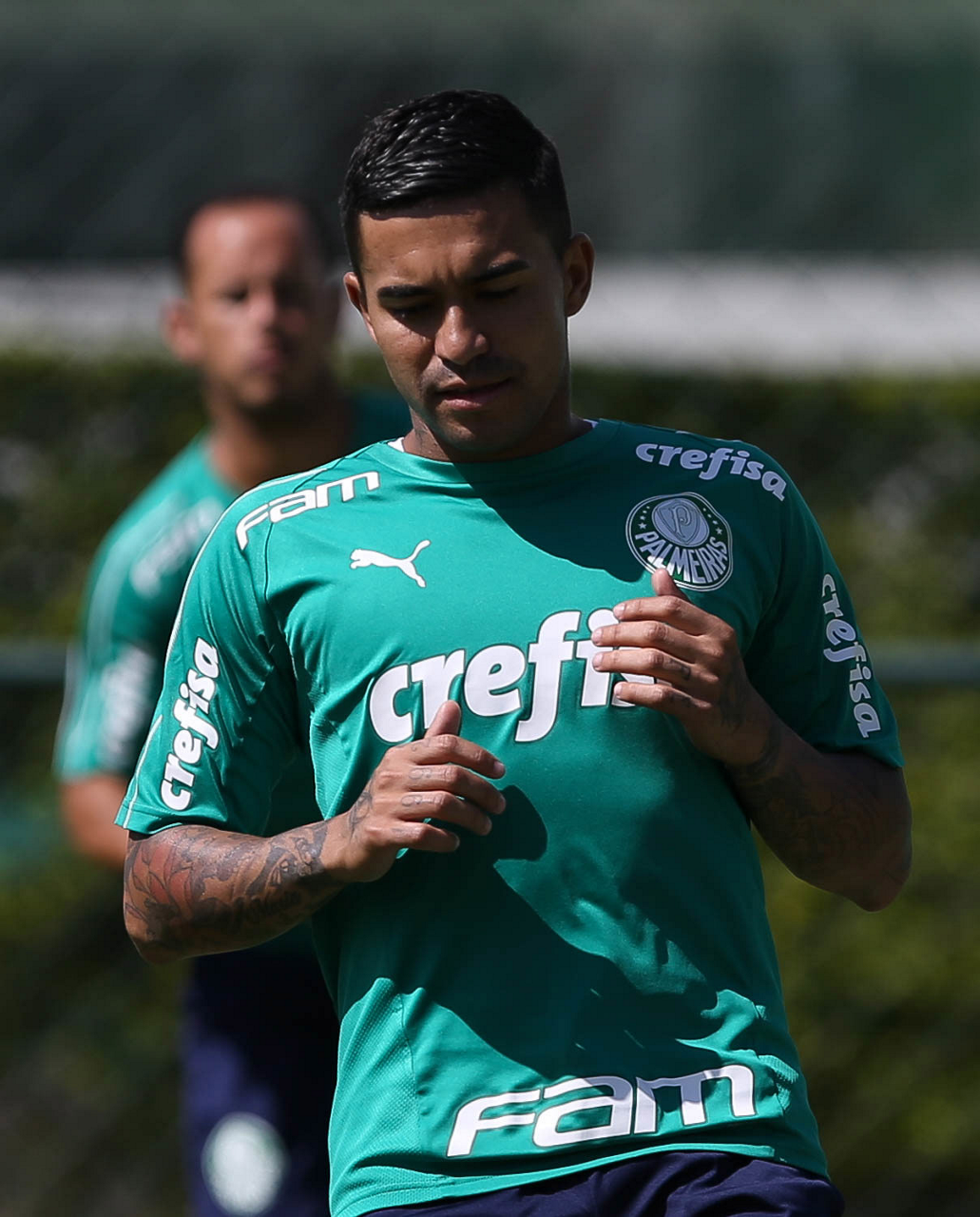 O jogador Dudu, da SE Palmeiras, durante treinamento, na Academia de Futebol.