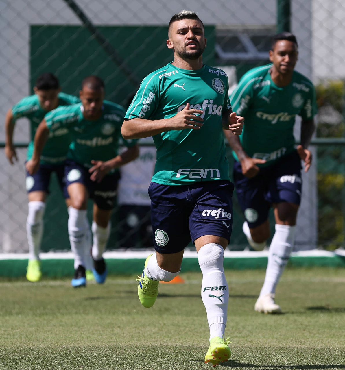 O jogador Deyverson, da SE Palmeiras, durante treinamento, na Academia de Futebol.