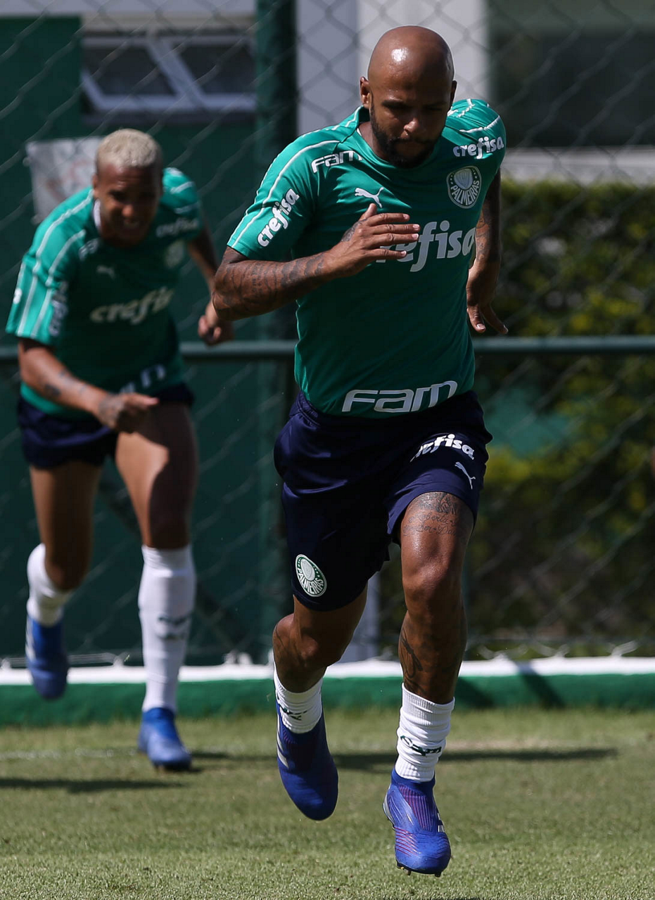O jogador Felipe Melo, da SE Palmeiras, durante treinamento, na Academia de Futebol.