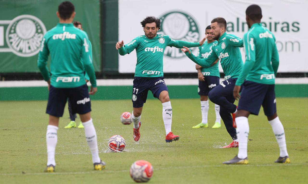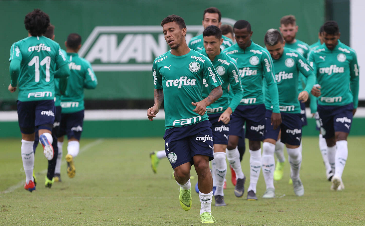 O jogador Gustavo Gómez, da SE Palmeiras, durante treinamento, na Academia de Futebol.