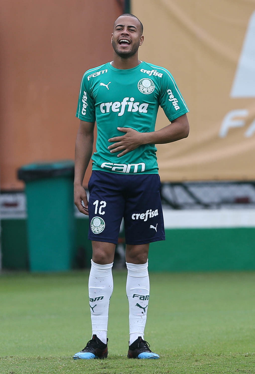 O jogador Mayke, da SE Palmeiras, durante treinamento, na Academia de Futebol.