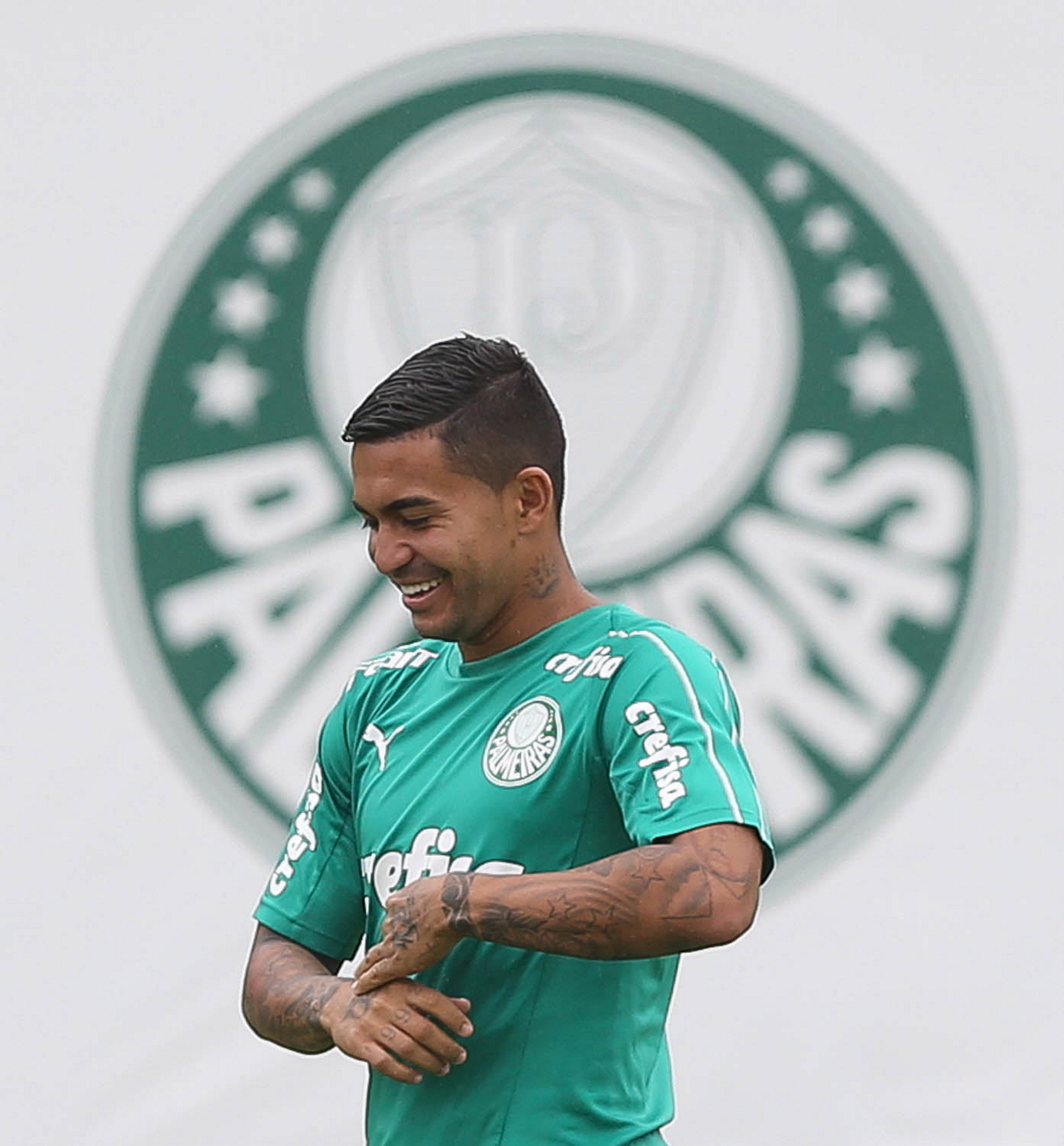 O jogador Dudu, da SE Palmeiras, durante treinamento, na Academia de Futebol.