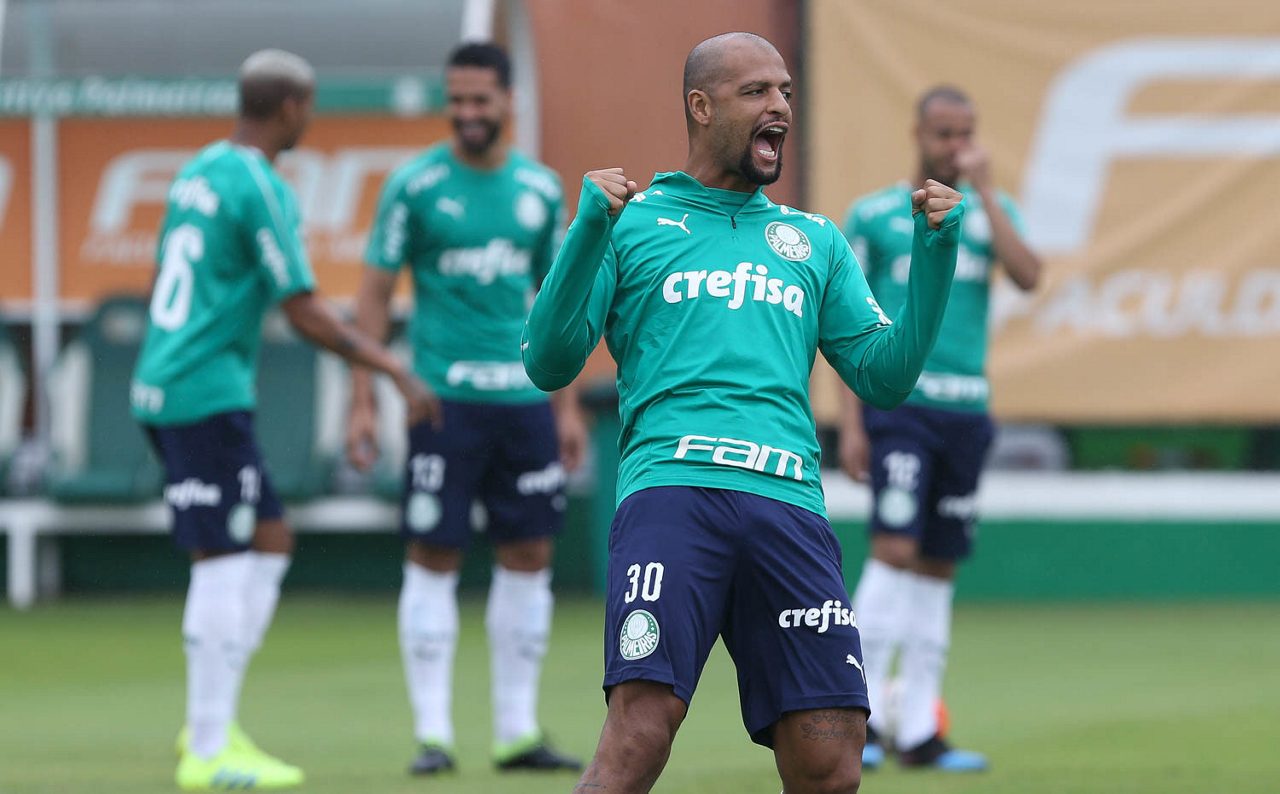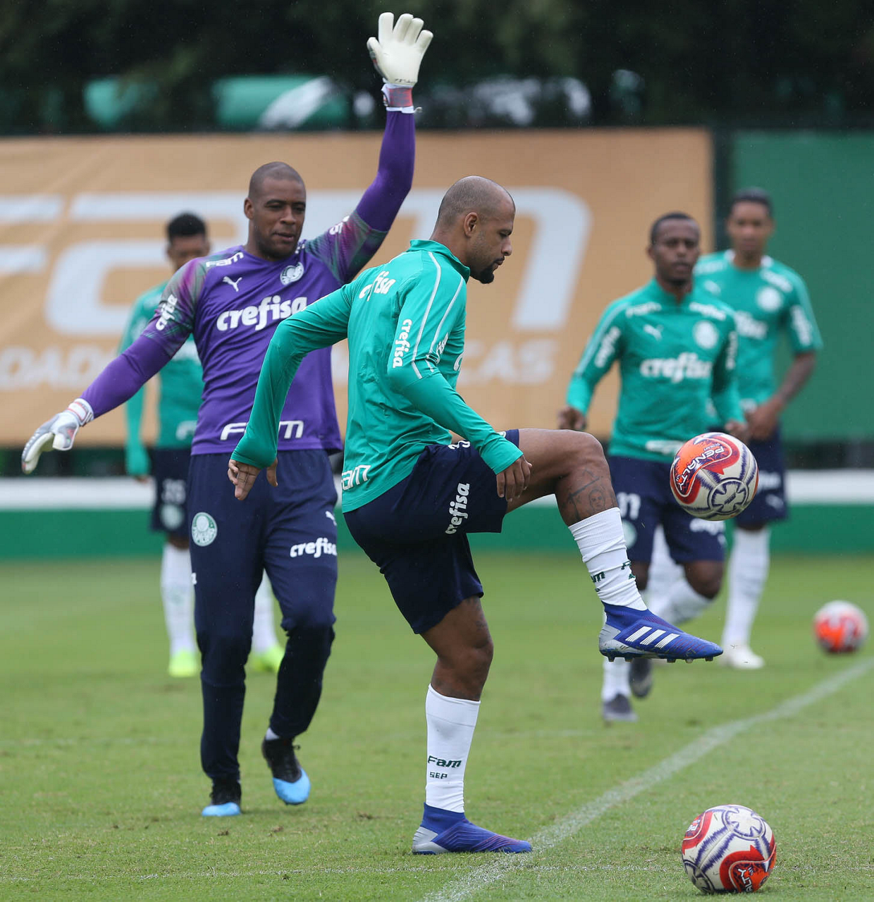 O jogador Felipe Melo, da SE Palmeiras, durante treinamento, na Academia de Futebol.