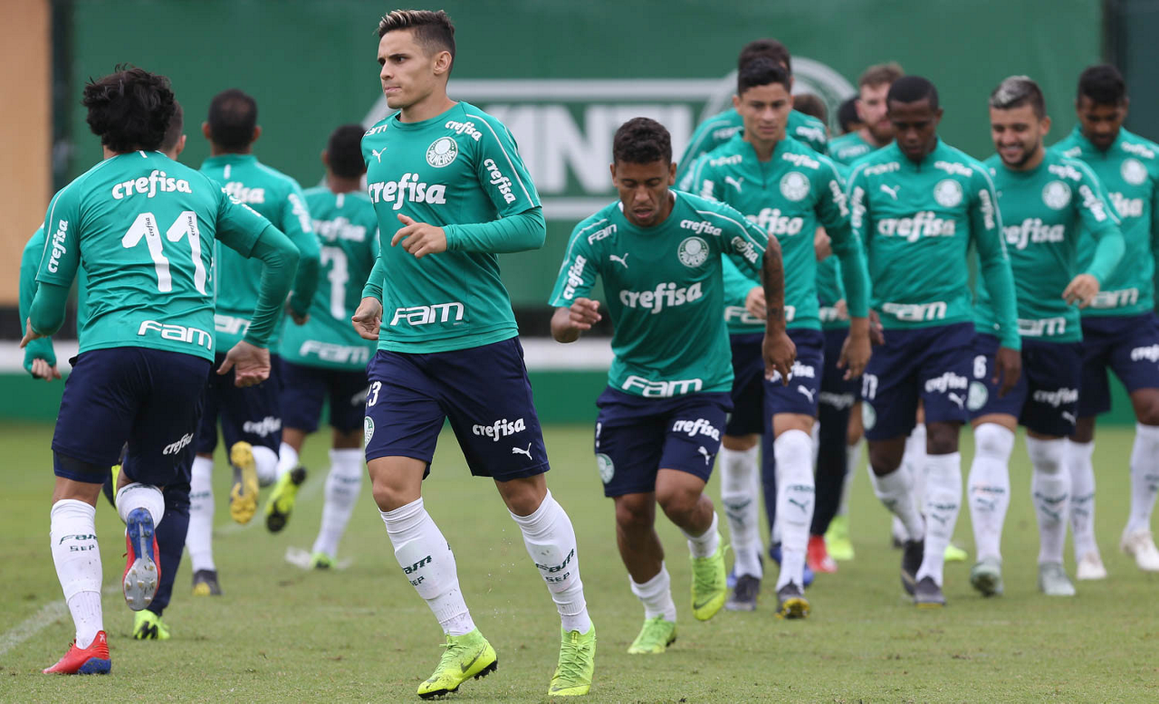 O jogador Raphael Veiga, da SE Palmeiras, durante treinamento, na Academia de Futebol.