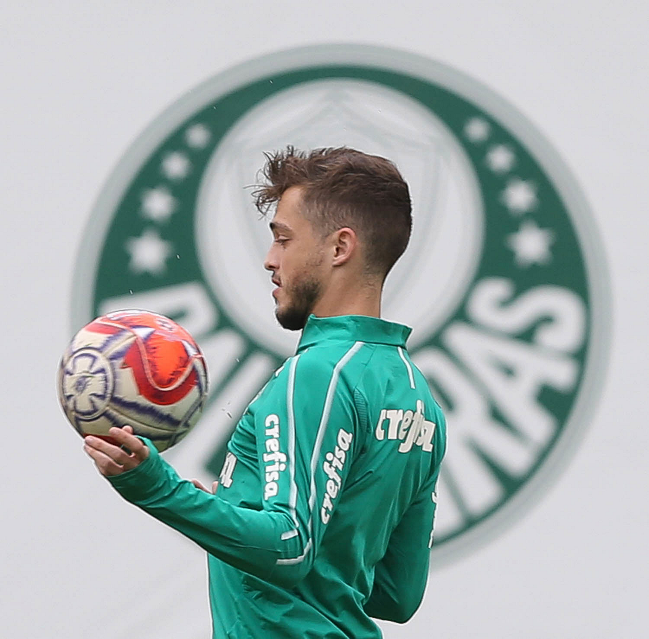O jogador Felipe Pires, da SE Palmeiras, durante treinamento, na Academia de Futebol.