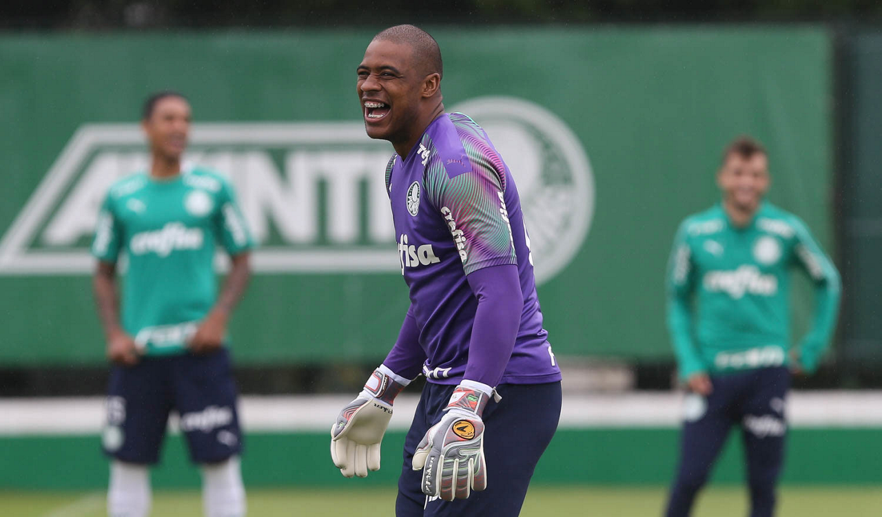 O goleiro Jailson, da SE Palmeiras, durante treinamento, na Academia de Futebol.