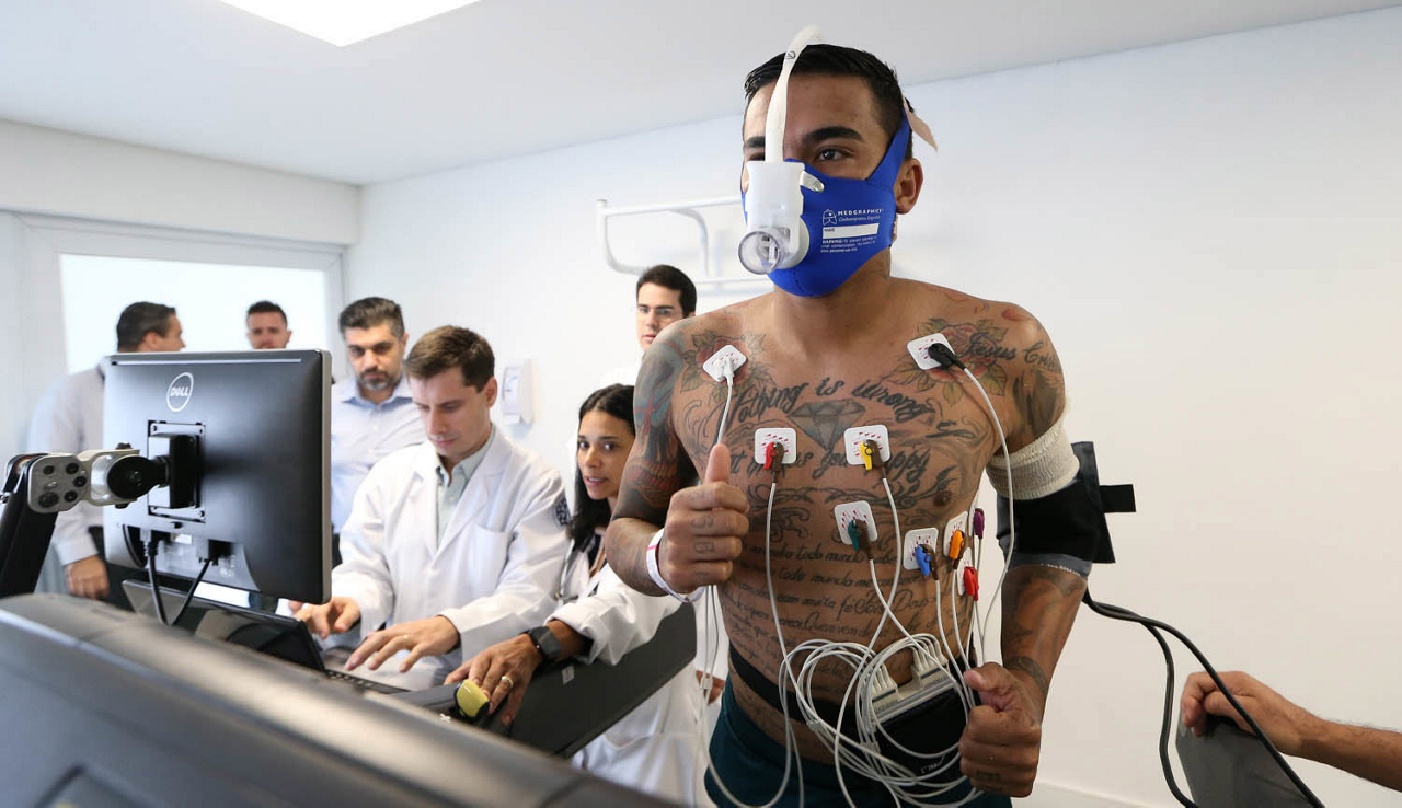 O jogador Diogo Barbosa, da SE Palmeiras, durante exames de reapresentação, na Academia de Futebol. (Crédito: Divulgação)