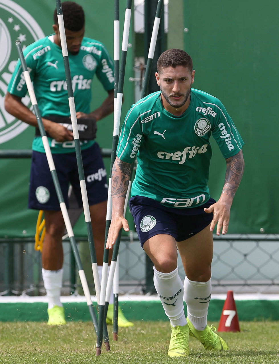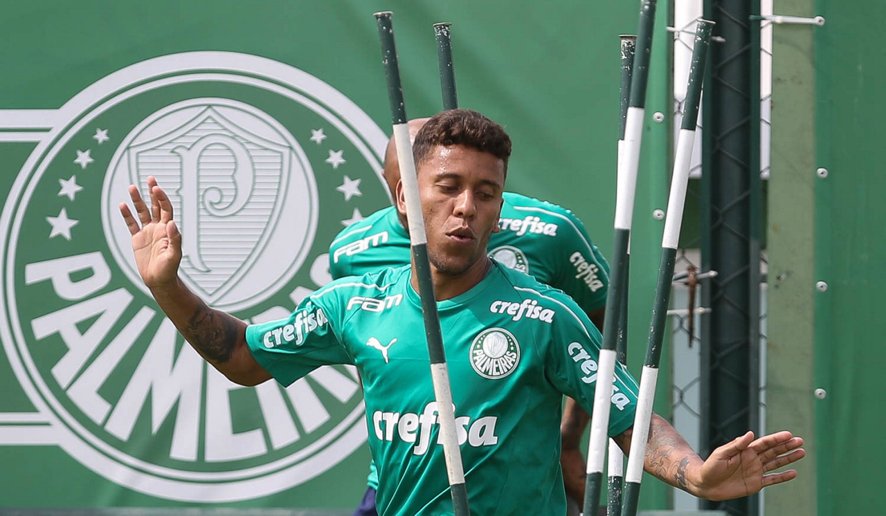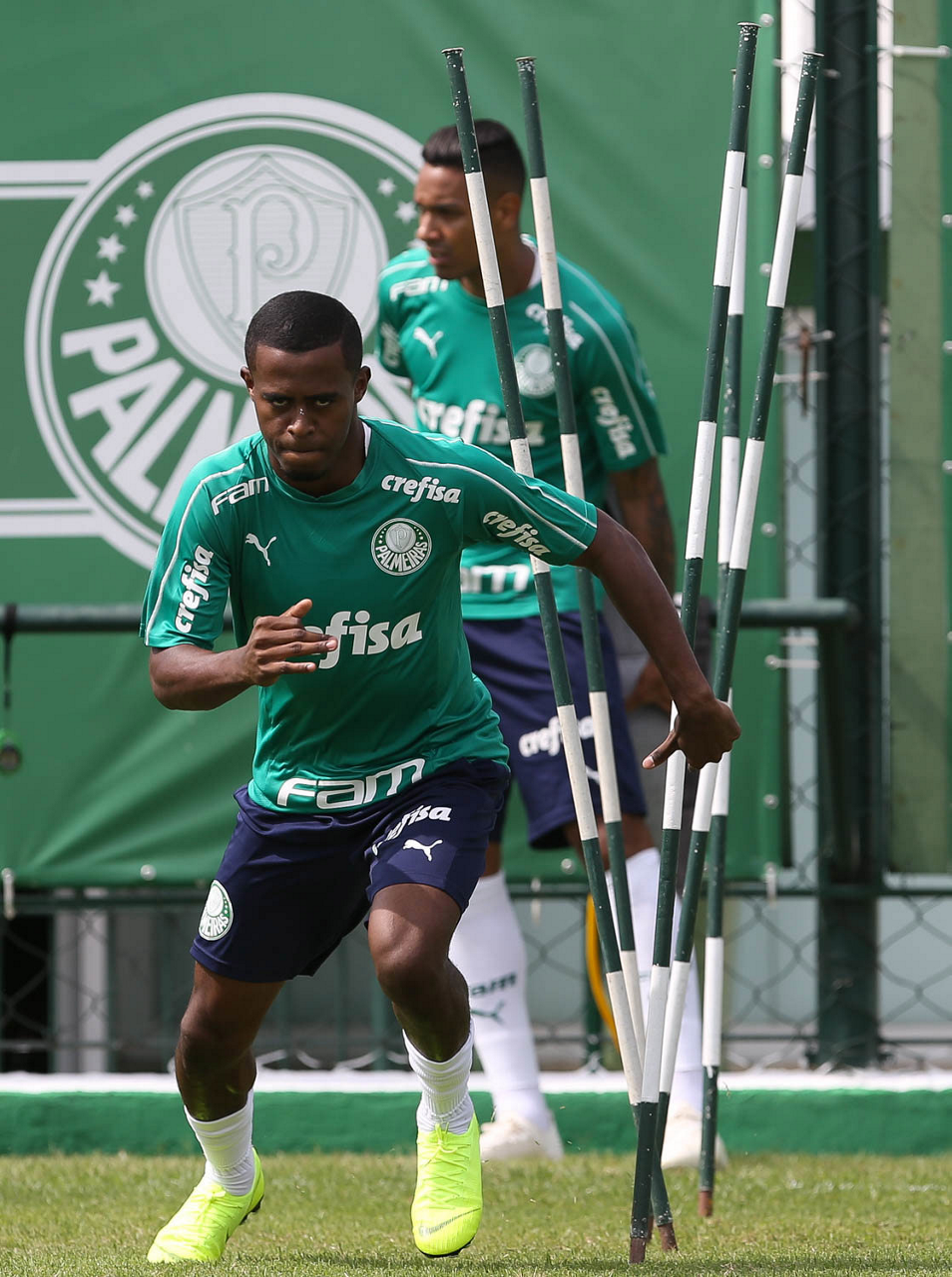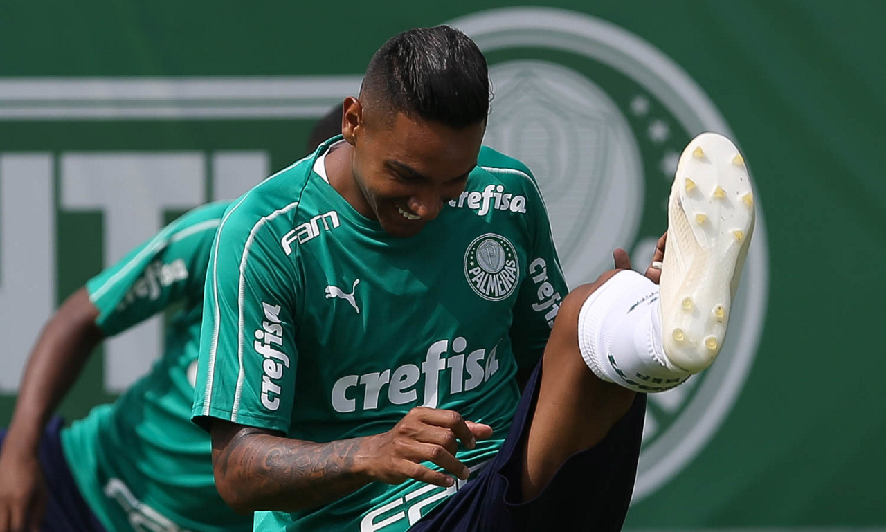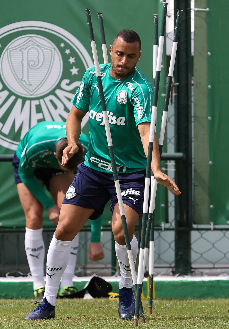 O jogador Deyverson, da SE Palmeiras, durante treinamento, na Academia de Futebol.