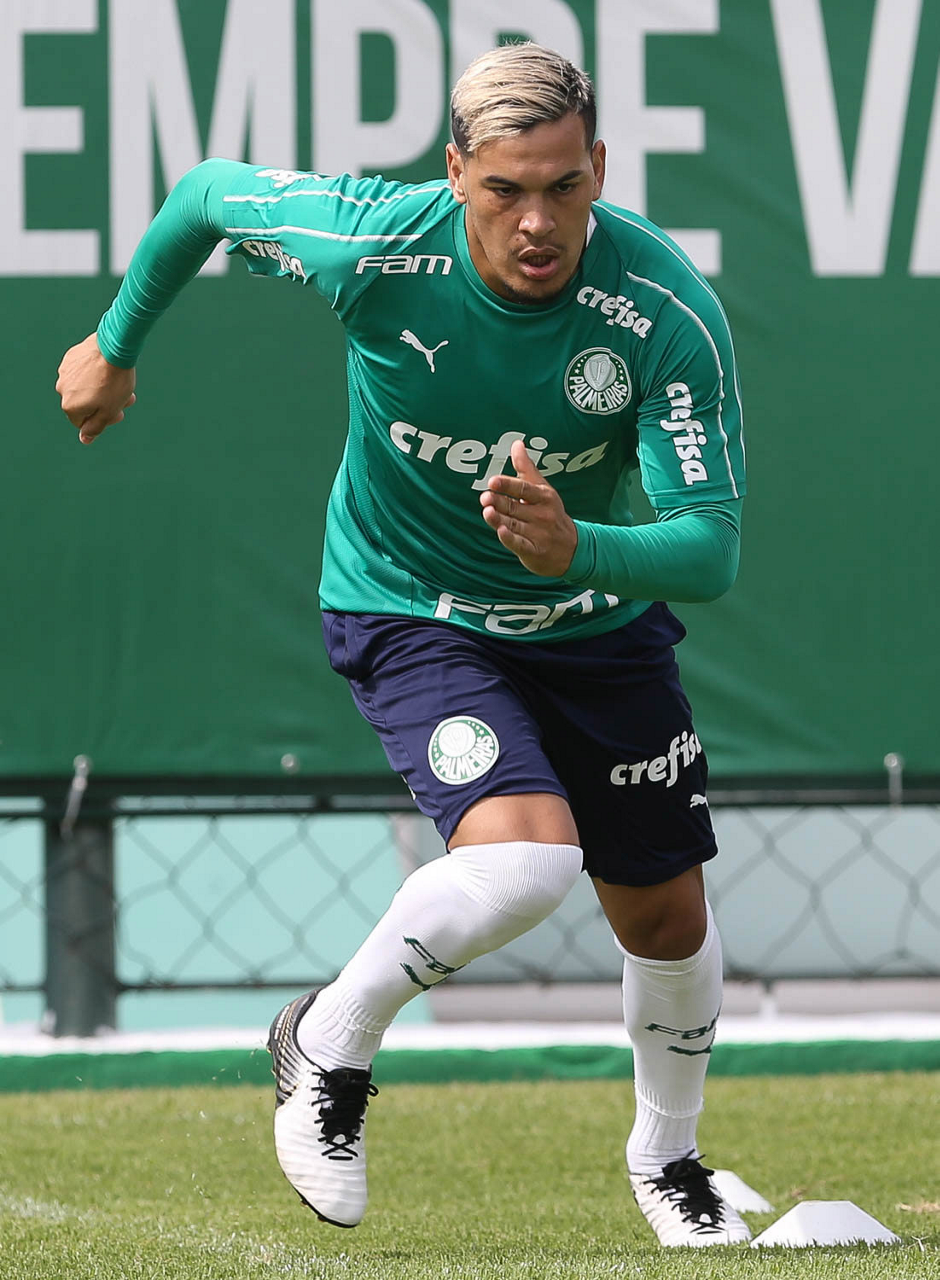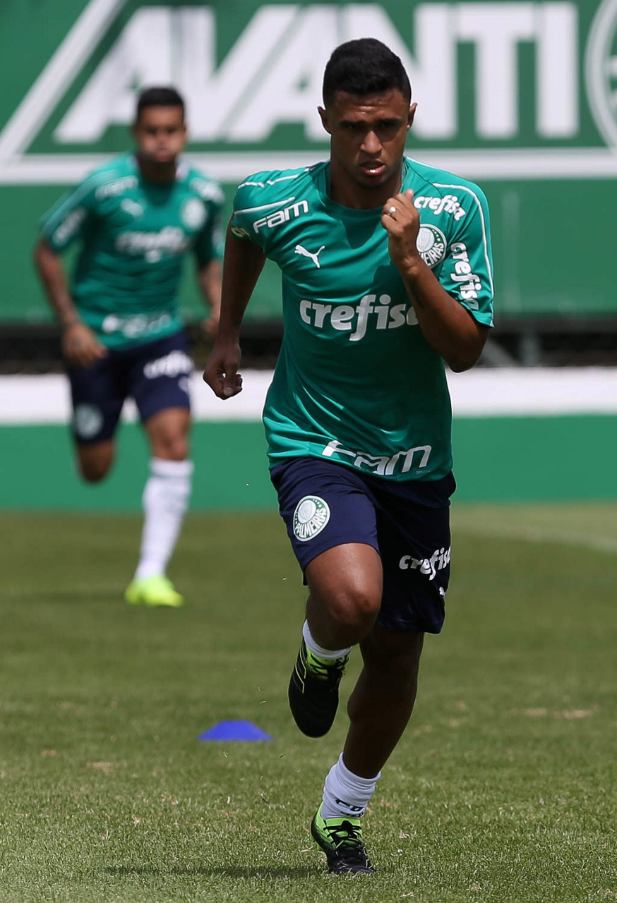 O jogador Arthur Cabral, da SE Palmeiras, durante treinamento, na Academia de Futebol.