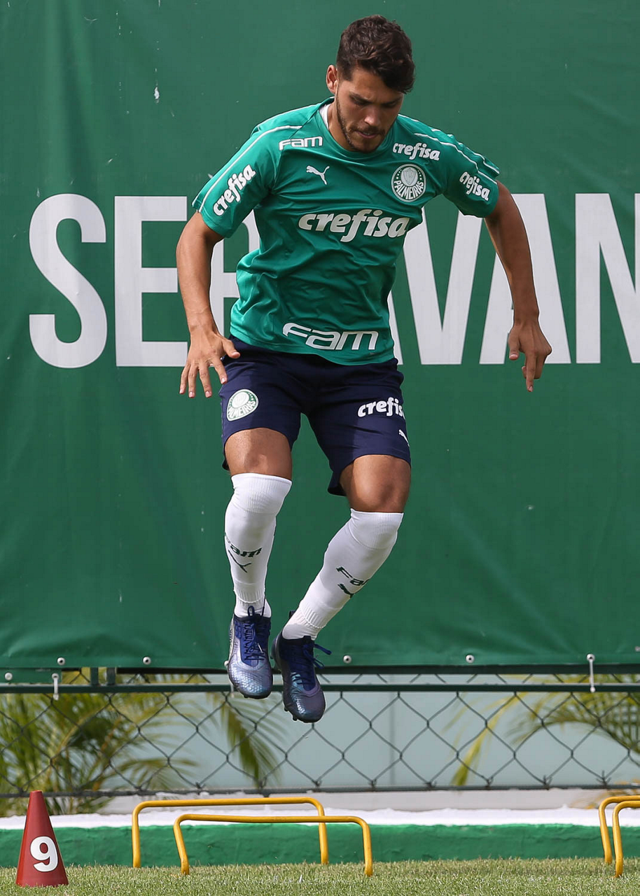 O jogador Felipe Pires, da SE Palmeiras, durante treinamento, na Academia de Futebol.