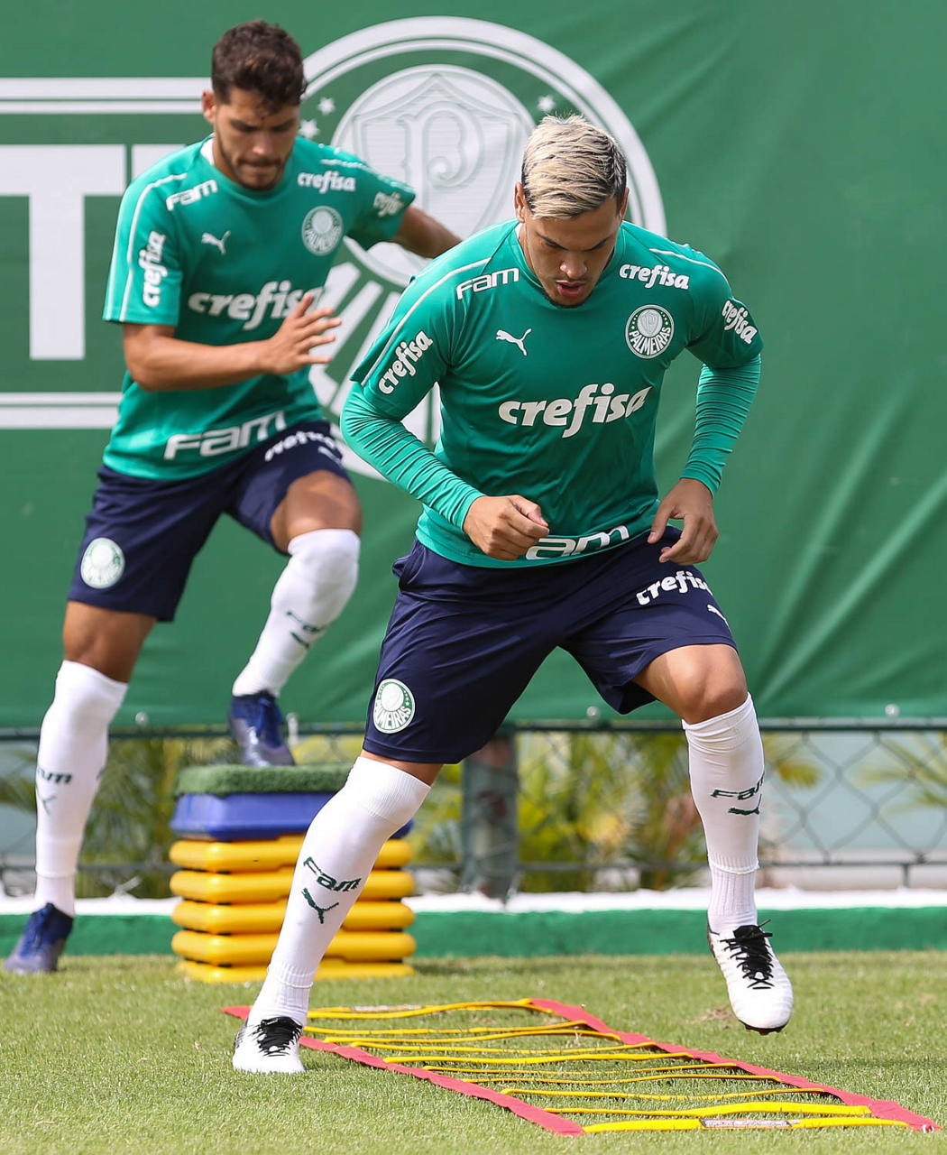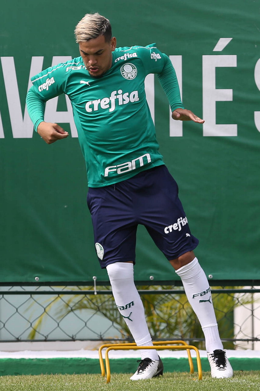 O jogador Bruno Henrique, da SE Palmeiras, durante treinamento, na Academia de Futebol.