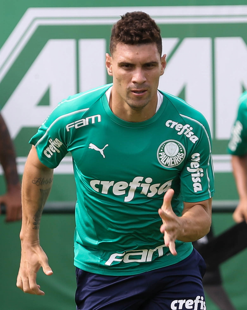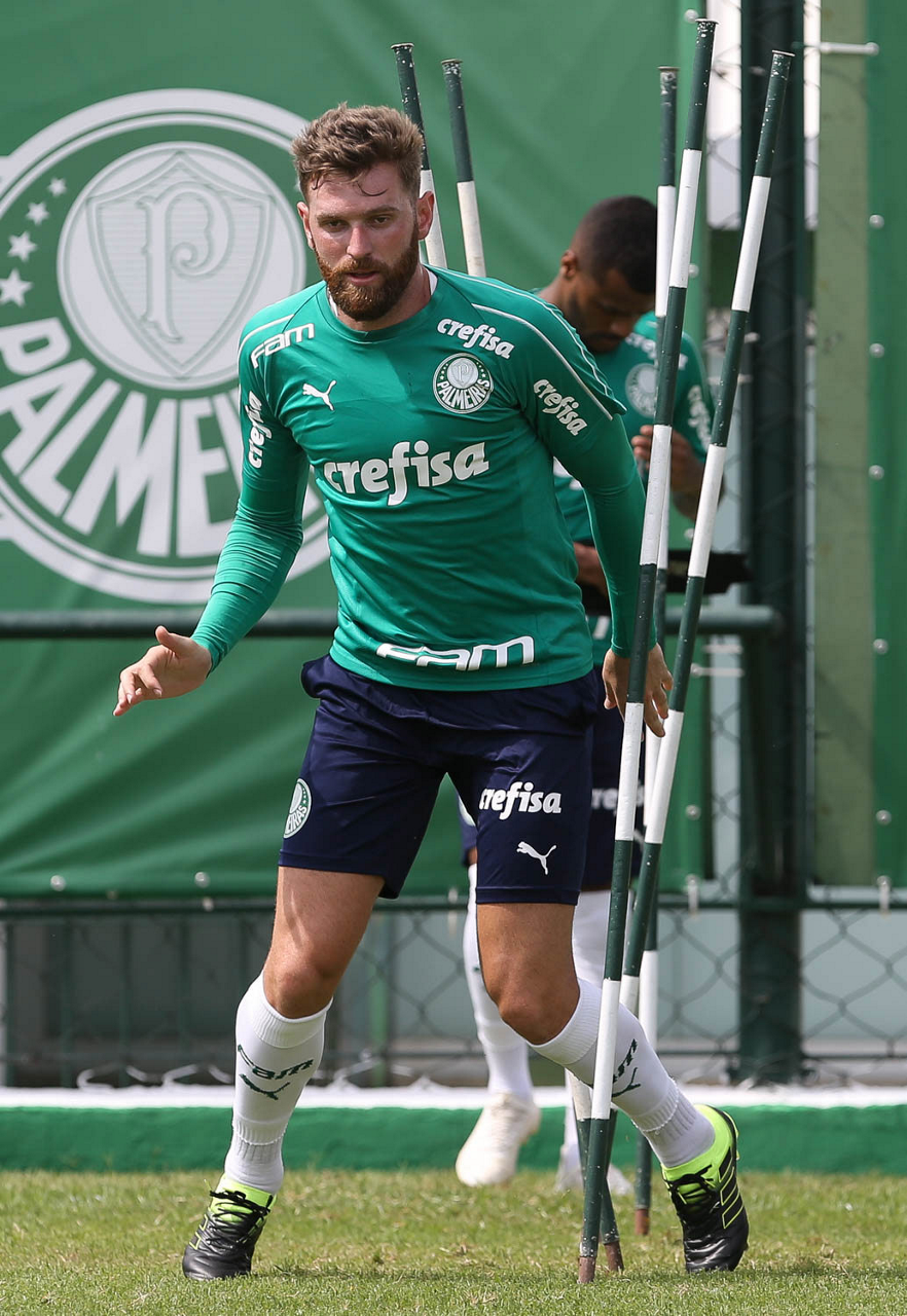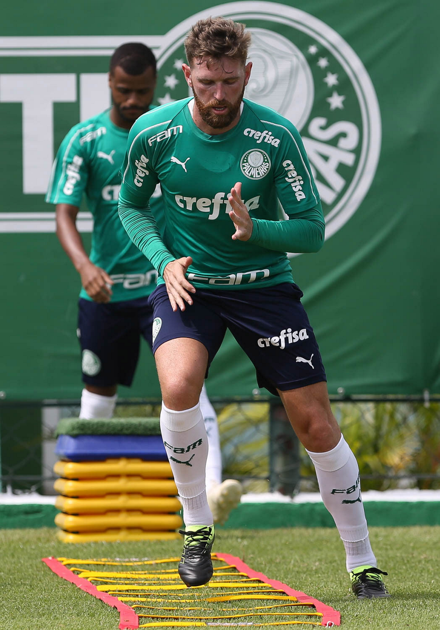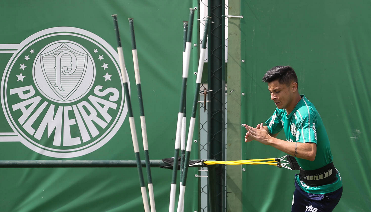 O jogador Borja, da SE Palmeiras, durante treinamento, na Academia de Futebol.