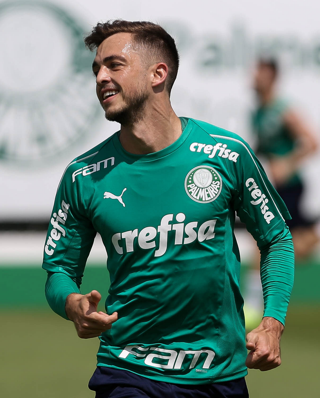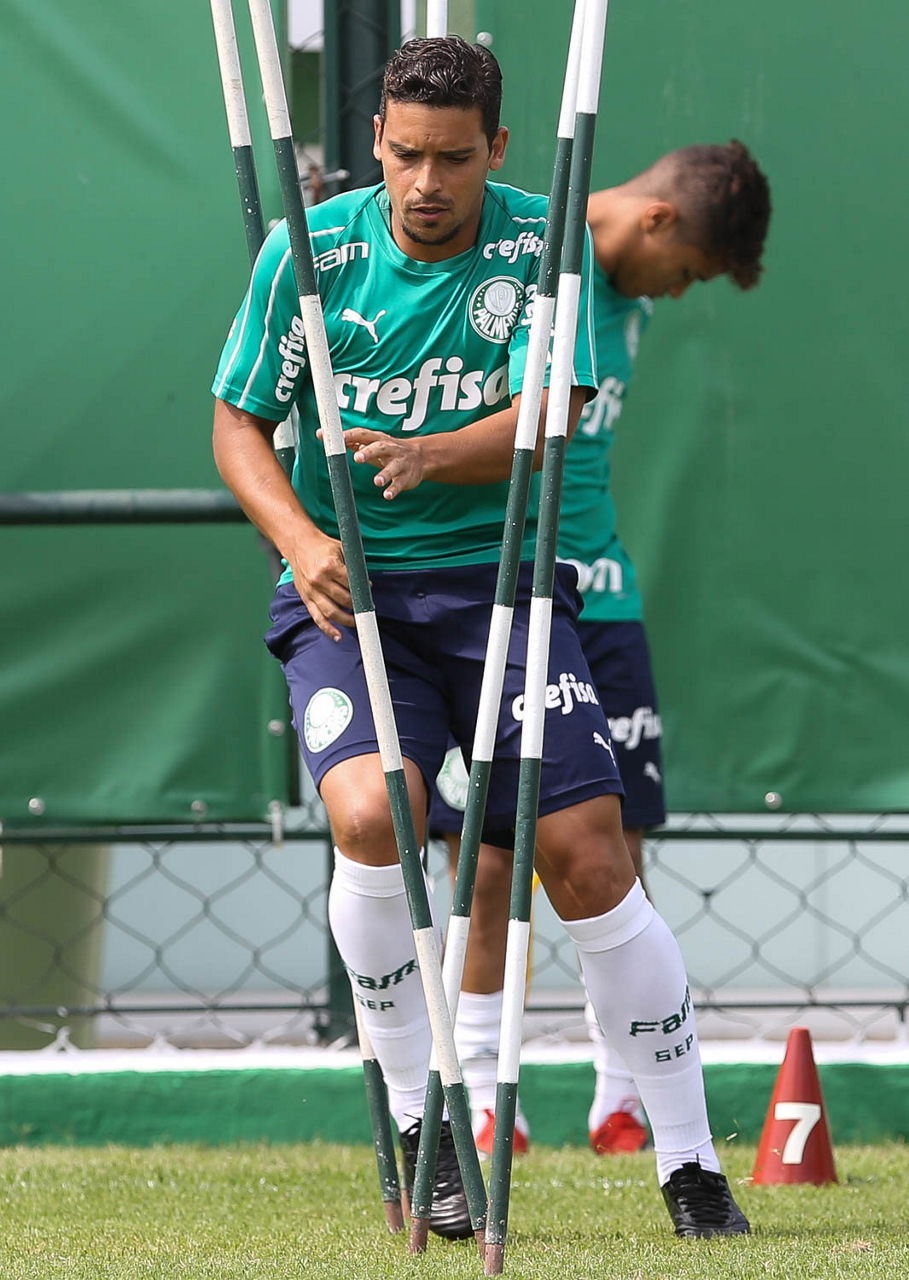 O jogador Gustavo Scarpa, da SE Palmeiras, durante treinamento, na Academia de Futebol.
