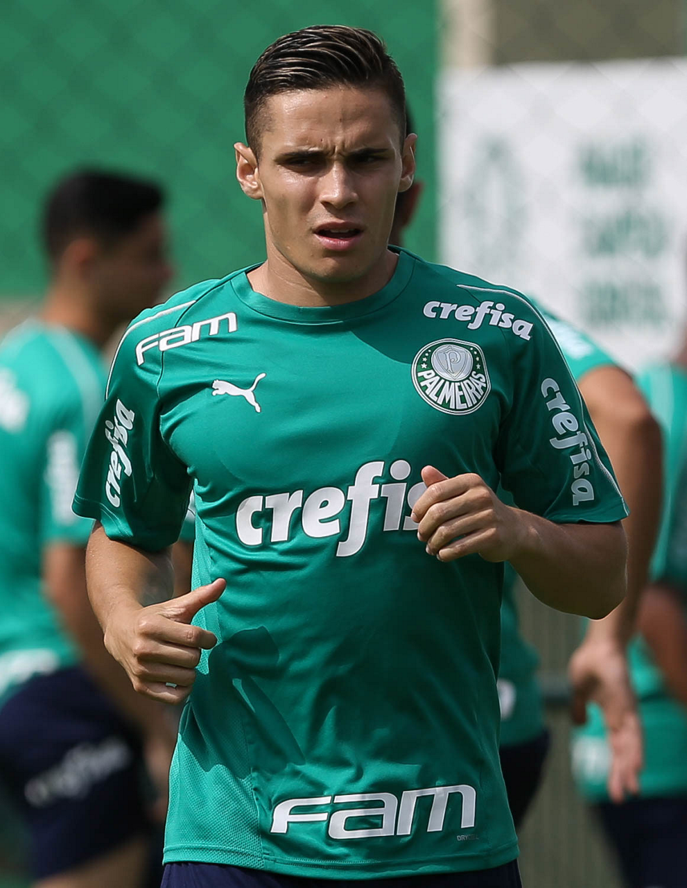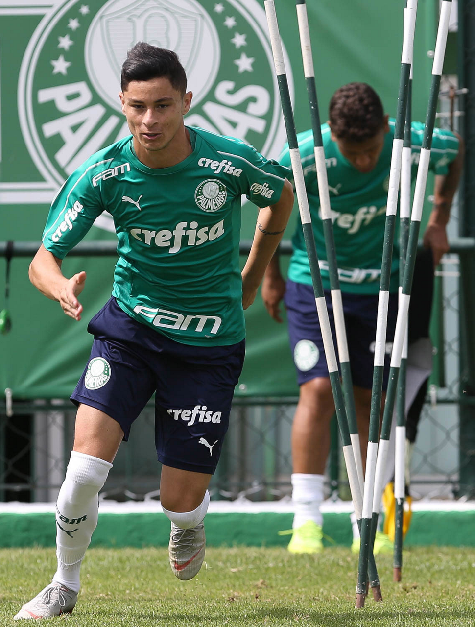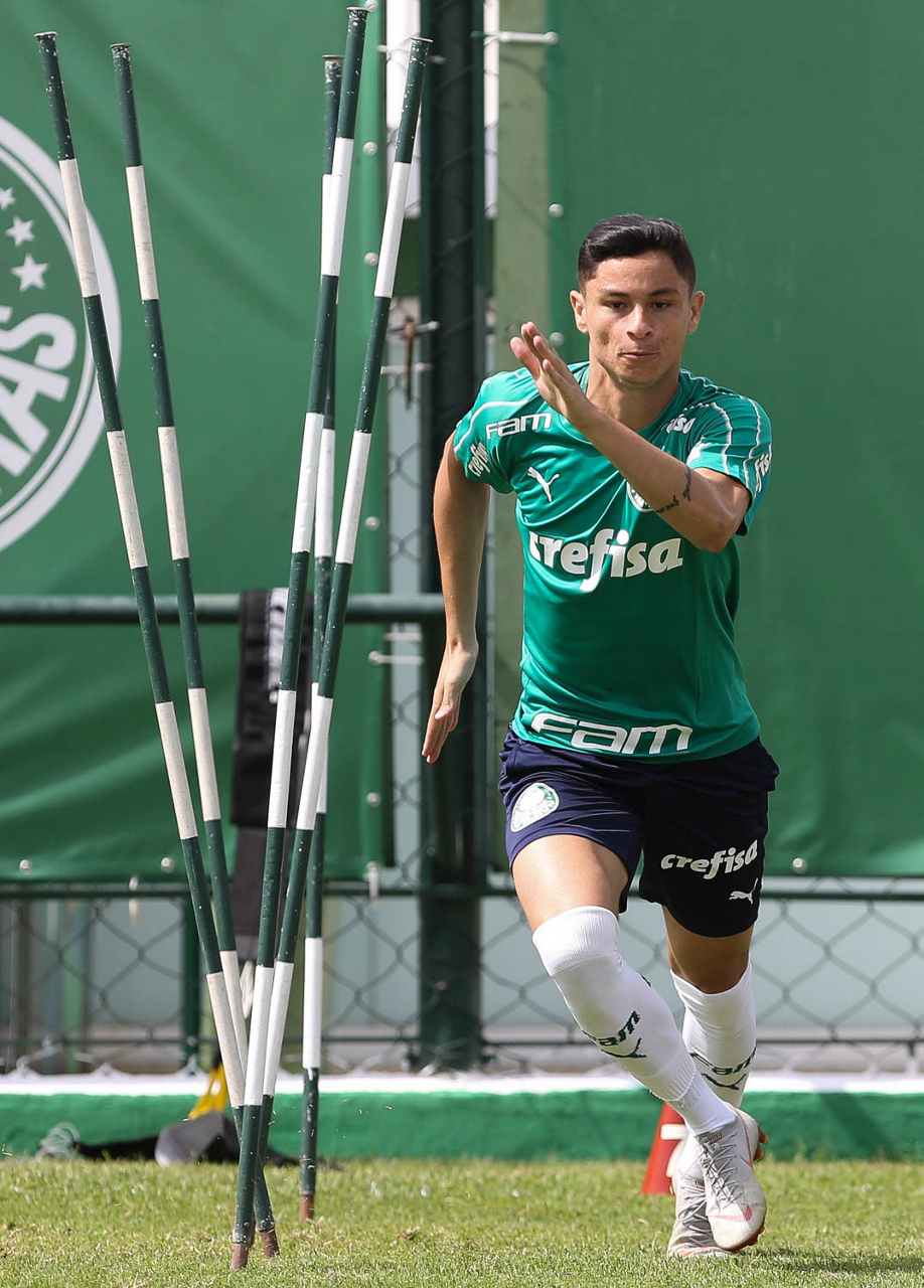 O jogador Raphael Veiga, da SE Palmeiras, durante treinamento, na Academia de Futebol.
